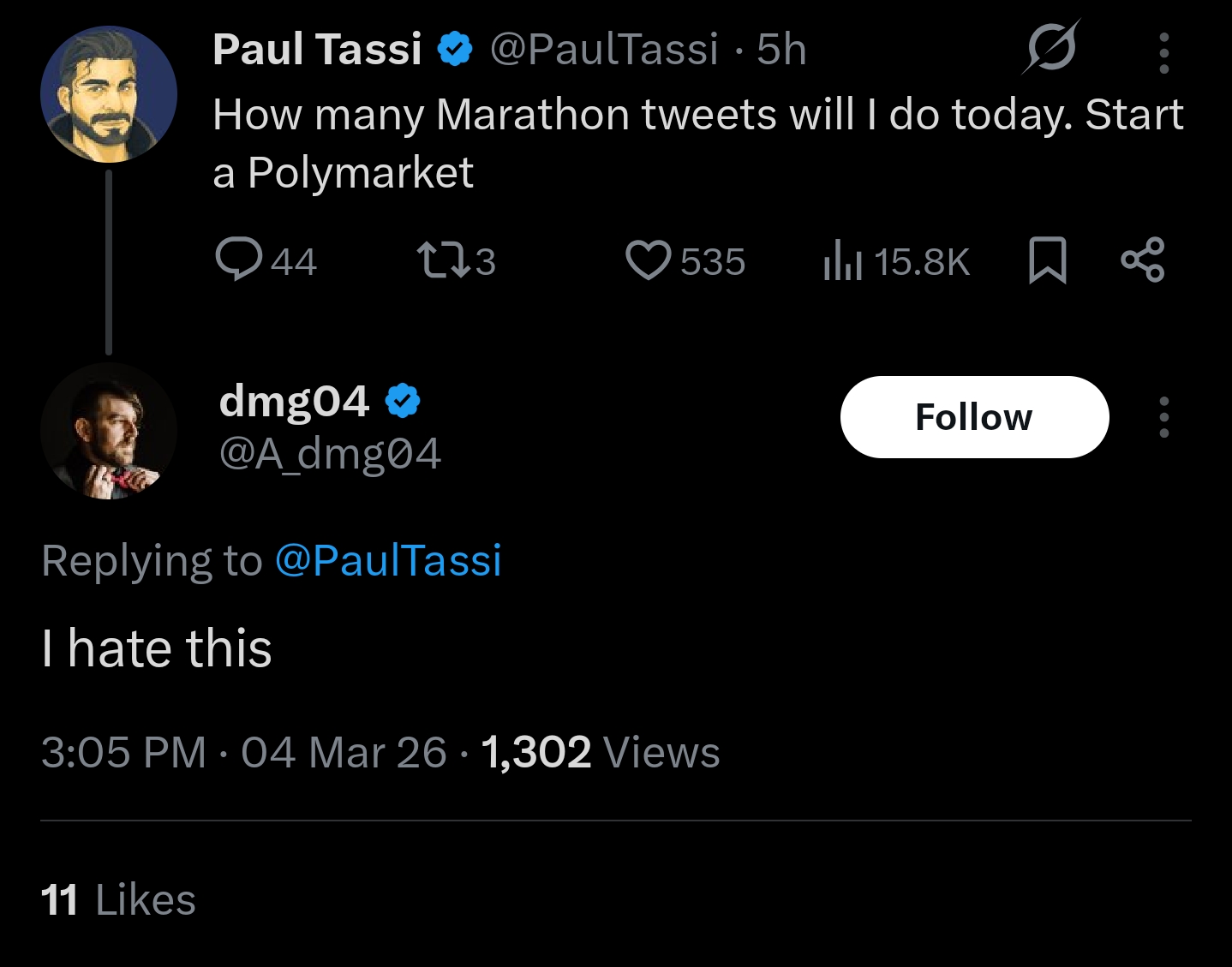 >after an hour he's alone