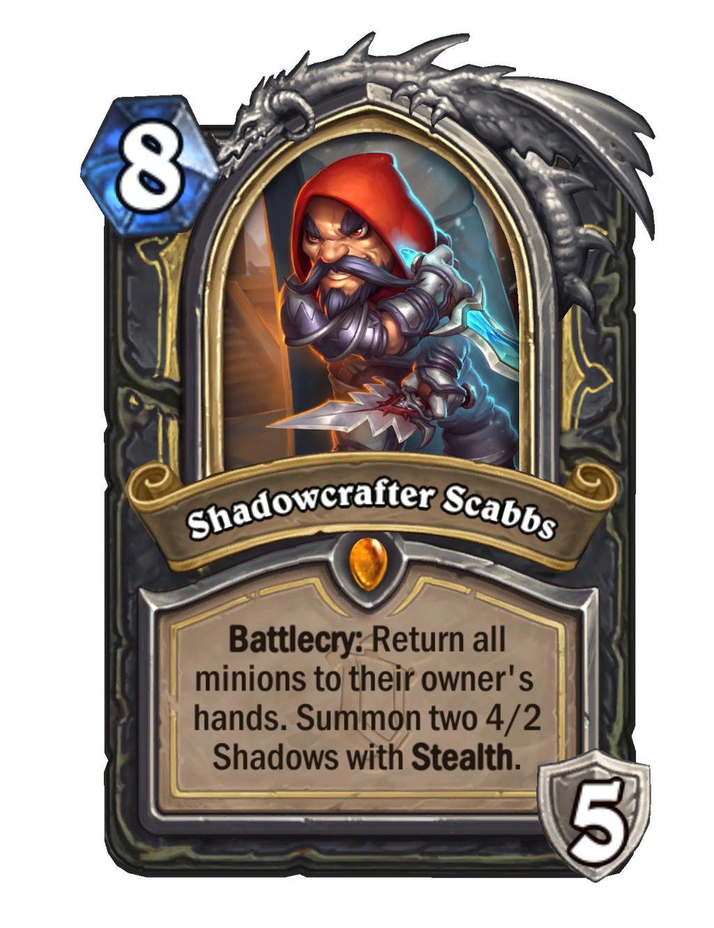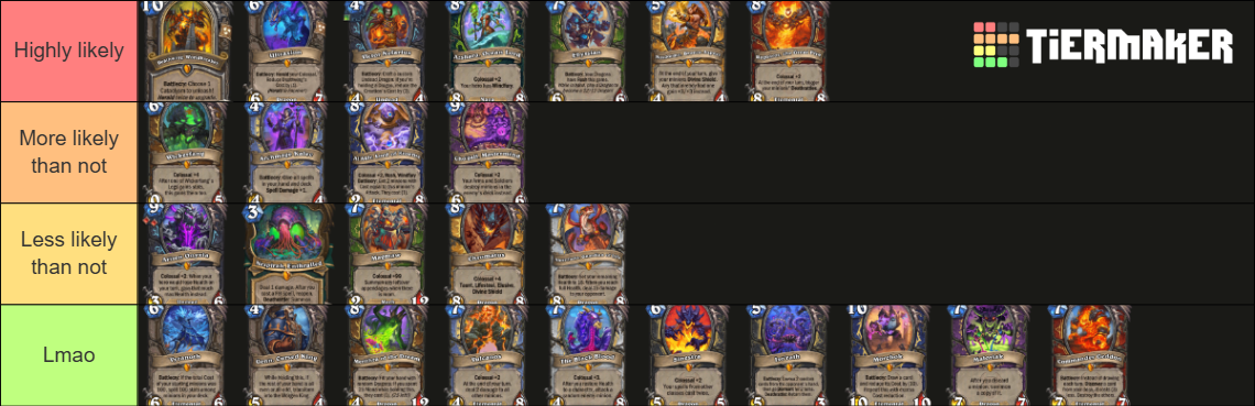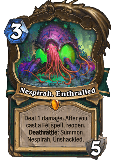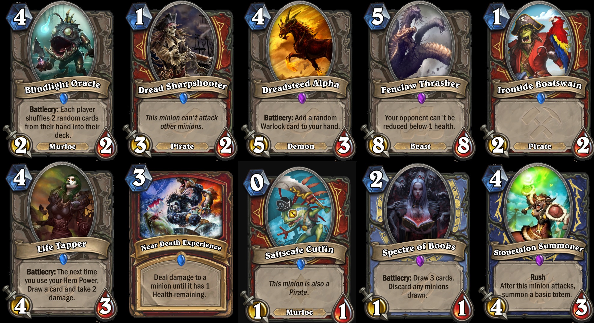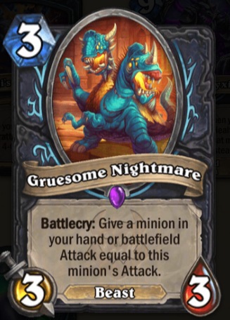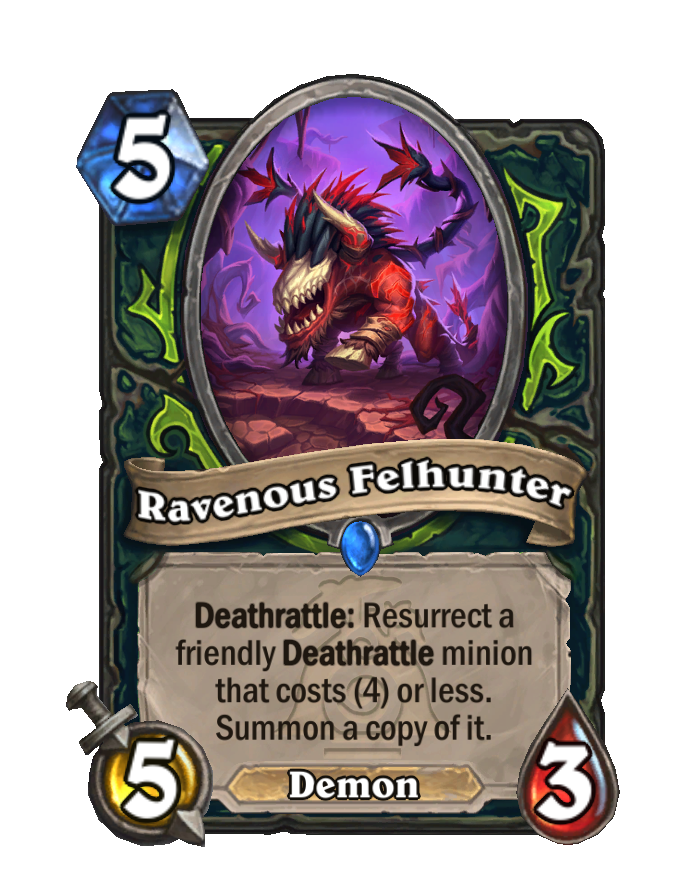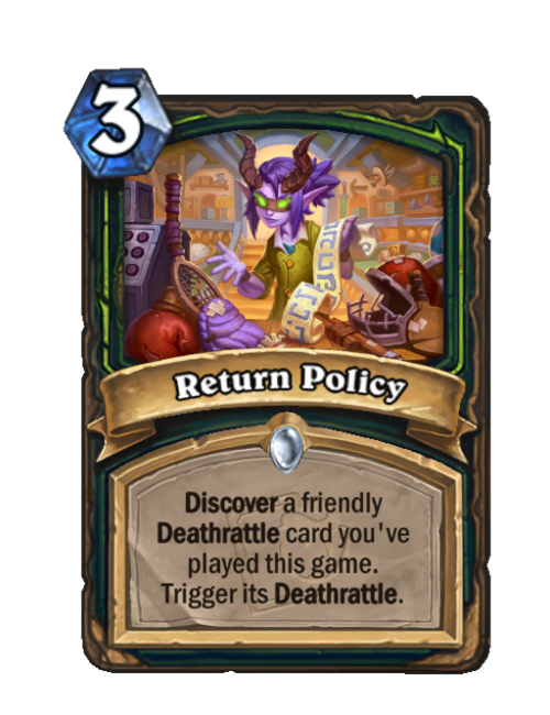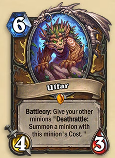 It's insane that this card made it this far without AT THE ABSOLUTE MINIMUM LEAST a "Deathrattle card that DIED this game" rider.