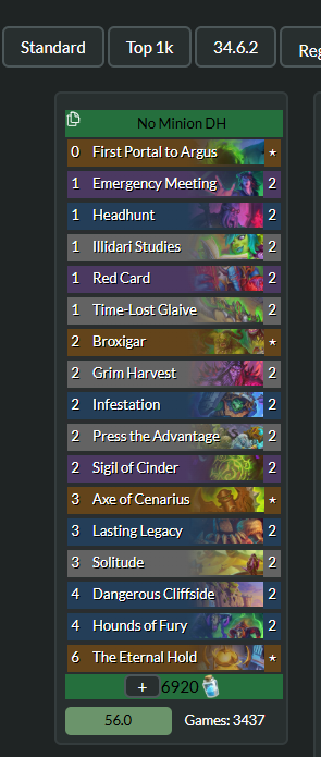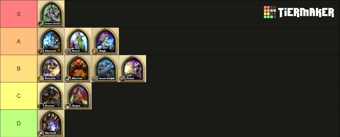 it really makes me feel that there's no class favoritism at all when Blizzard would happily nerf every single deathrattle in the game before nerfing one (1) demon hunter cardi can really feel there isn't a clear intention to have DH be the best class in the game in every single situation. after all they've only had a Tier 1 deck for what, all expansions?