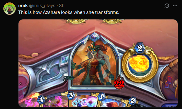 I really wish I could understand these sort of controlcucks. I really do. I don't get what is this siren's call they feel when they think about a deck that has no win condition, no way to actually win a game other than a nebulous "uhhhh I guess I'll clear the board and press the button that gives me a card. I fucking love pressing the button generating a card". There are now 2 classes whose entire Imbue is "press this button every time to feel the THRILL of generating a card, it might EVEN be a good card!". And they're both really popular. I don't get it. I wish I could see what's going on inside the skull of people like Kibler who play a card game where you choose 30 cards and then decide that instead of having these 30 cards work off each other to arrive to a win they'd just rather drag the game to 50 minutes and """""""""""""""""""""generate value""""""""""""""""""""" to win.