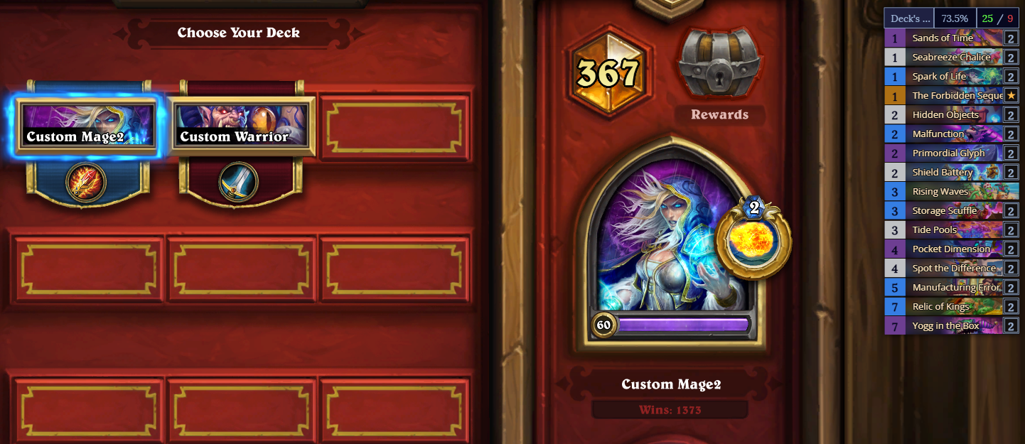 >>559280445The fun part about this game is having a grasp of what the opponent can do and how to adapt your play towards that. With these sort of control decks that are just "lolgenerate" this goes entirely out of the window. Will Rogue generate a broken synergy with a spell and a minion from two different non-Rogue classes? Will Priest get the fifth resuscitate? Who knows! It gives a "balanced" winrate (actually usually below average) because generated cards are usually worse rather than better, but neither player is really in control. You're at the mercy of random effects. I suggest grabbing some keys and jingling them in front of your face, you might also find it very entertaining.