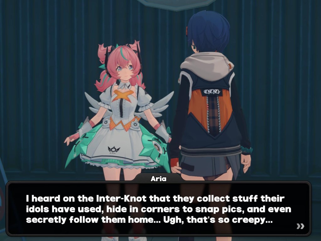 Can anyone tell me if Aria's hangouts/bond events are done in her clanker form, hologram, or a mix depending on context?