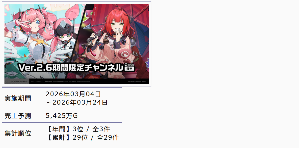Previous: >>559281560>NewsAgent Record | Cissiahttps://www.hoyolab.com/article/43750810Agent Record | Nangong Yuhttps://www.hoyolab.com/article/43737155Version 2.6 "Encore for an Old Dream" Special Programhttps://youtu.be/oTRy9pZ4TYE>Newest Trailer/Teaser/Character demohttps://youtu.be/HuW-WYjg-fAhttps://youtu.be/eFaQVb4mneEhttps://youtu.be/0DmndMnuh5E (EN)https://youtu.be/TJXSiIESLyc (JP)https://youtu.be/06G8YgOrXTw (EN)https://youtu.be/FJ0HD6RC6PY (JP)>Upcoming Events for 2.6https://zenless.hoyoverse.com/en-us/news/162561A Harmony of Delusions 02/05 - 03/23Angel's Invitation 02/05 - 04/15Delusion Special 02/05 - 03/23Potential Hypothesis: Frosted Feathers 02/05 - 03/23Livestream for Fluttering Wings 02/05 - 03/23Gilded Surprise, Wonderful Boo-ns 02/14 - 02/25Stacking Fortune 02/16 - 02/24Advanced Bounty: Area Patrol 02/25 - 03/02Gravitational Storytime 03/04 - 03/23"En-Nah" Cheersquad Gift 03/04 - 03/23Snap! Hollow Real Showdown 03/09 - 03/23High Score Card Collector 03/16 - 03/23>Redeemable codes (claimable in-game or online)https://zenless.hoyoverse.com/redemptionZENLESSGIFTZHAOISFREEZZZANGELSZZZ26DELUSIONAODDEBUTZZZCREATOR26ZZZCUTENESSZZZGIGO>Resources and useful linkshttps://rentry.org/zzzlinkshttps://rentry.org/ZZZ-Friendshttps://rentry.org/ZZZ-Guilds>/zzz/ OP pastebin (use this if making new thread):https://pastebin.com/PzbMf13P