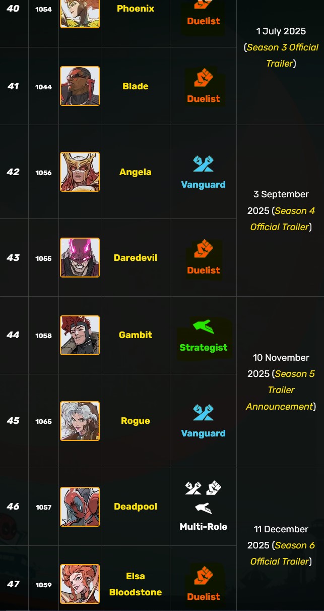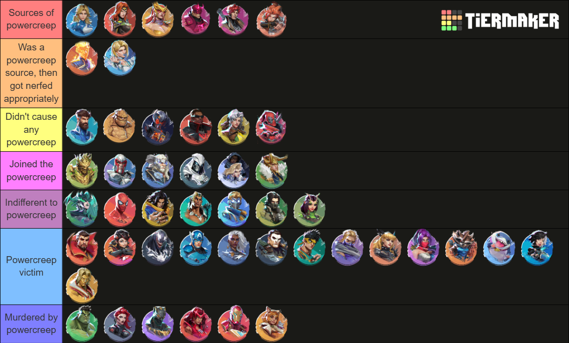 >>559486404>>559486527yeah the base roster is just going to be completely unplayable in like, half a year from now. we've already seen characters like psy, luna, iron man, storm, etc. fall out of relevance and it's only a matter of time till even characters like mag and bucky fall out in favor of new broken toys, as well.also only a matter of time till early post-launch characters become irrelevant as well, it's already happening to emma. you guys think they're gonna release a hitscan even stronger than phoenix down the road? phoenix 2, aka hela 3?