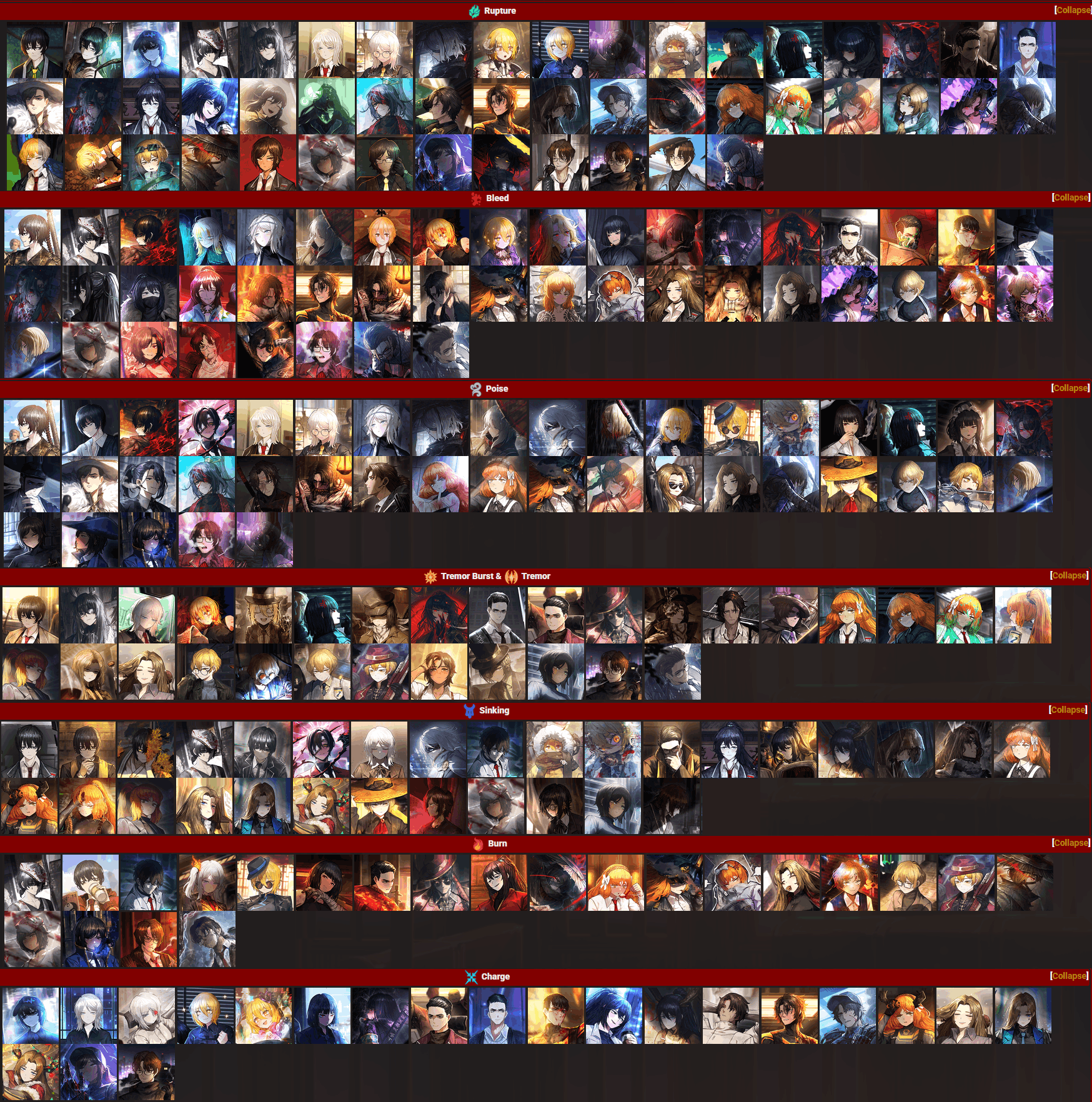 +1 to sinking/tremor and burn/bleed