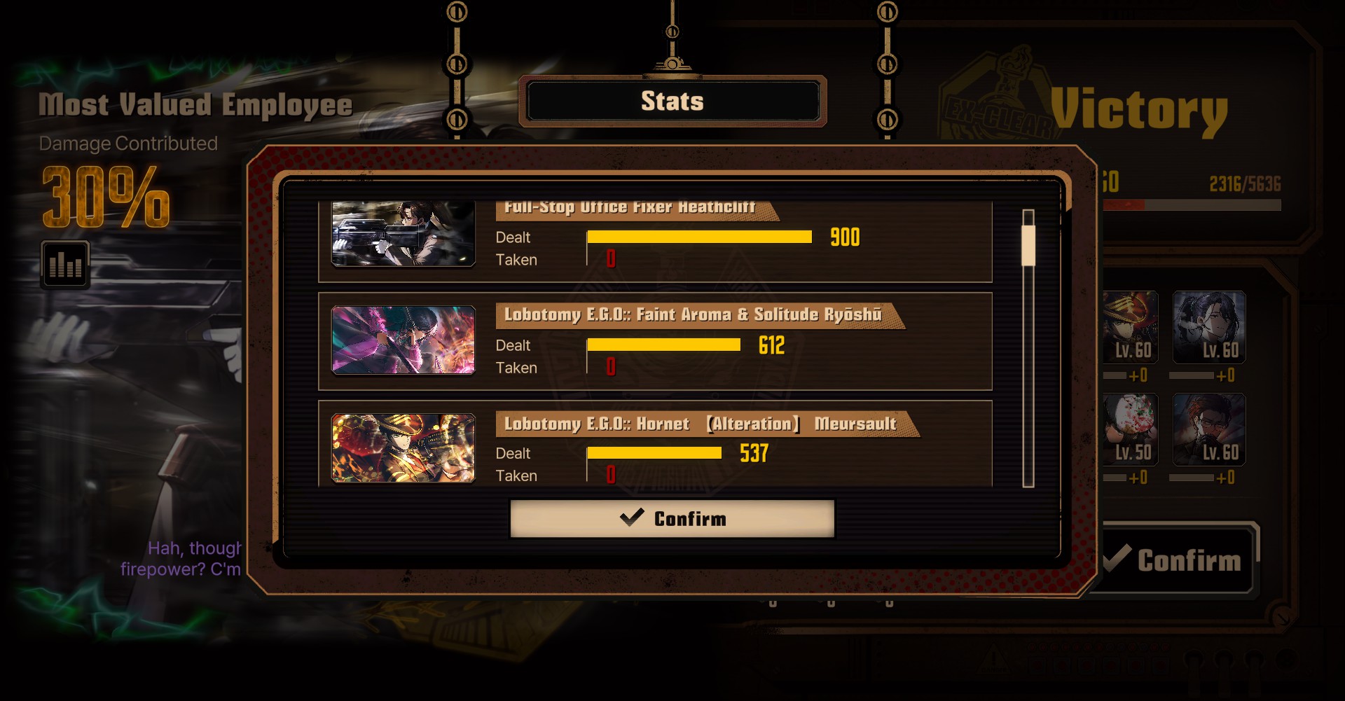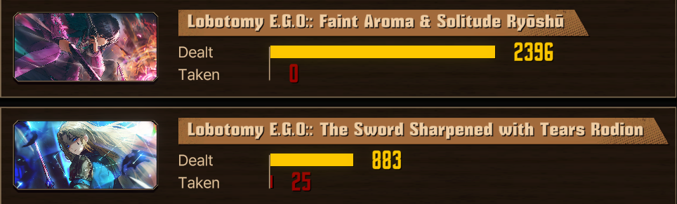>>559376501Meur is designed for multi enemy fights, he's pretty good at things like pierce lux. Ryoshu is a fucking menace. The EGO is alright, nothing crazy