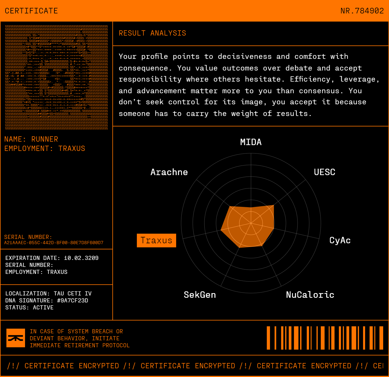 I can't decide who to rep between traxus and sekiguchi bros... I want the traxus AI to step on me and deny my human rights but they have the shittiest upgrades and most annoying contracts, sekiguchi has a cool worm and was what i got in the personality test