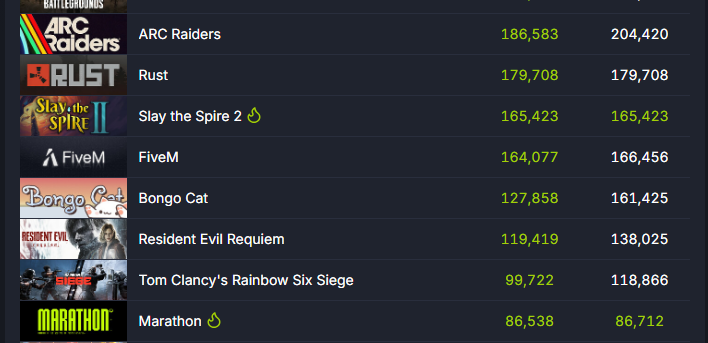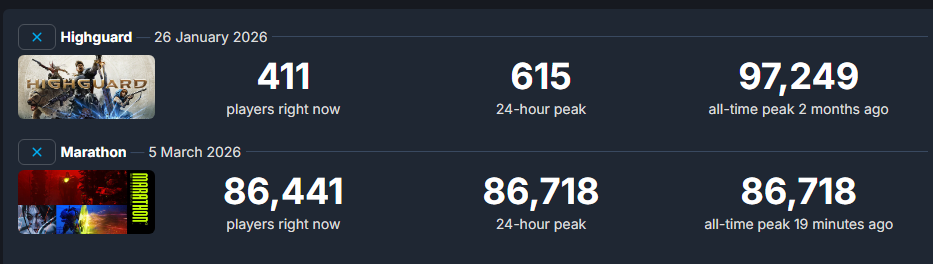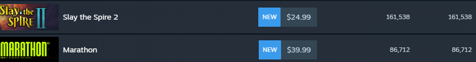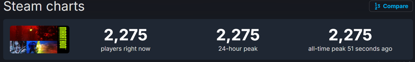 Steam Chart sissies have been real quiet since Marathon dropped