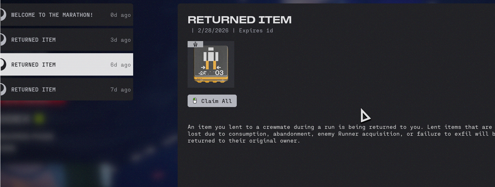 Proud hopefag edition>Game Info:https://store.steampowered.com/app/3065800/Marathon/>Marathon Game Home Pagehttps://www.marathonthegame.com/>Reveal Cinematichttps://www.youtube.com/watch?v=fvbEnWLRo1s>Launch cinematichttps://www.youtube.com/watch?v=vtw5BDpKgJM>Gameplay Trailershttps://www.youtube.com/watch?v=hWwXSb7dlnQhttps://www.youtube.com/watch?v=MXhQbF7TlbA>New Gameplay Footagehttps://www.youtube.com/watch?v=ToVHiqE_S5k>The Entire History of Marathonhttps://www.youtube.com/watch?v=yu7uN6-lNhk>Play the Original Marathon for Freehttps://store.steampowered.com/app/2398450/Classic_Marathon/https://marathon.bungie.org/story/Databases:https://tauceti.world/https://tauceti.gg/https://marathonmeta.gg/News:>SERVER SLAM ENDED MARCH 2https://www.bungie.net/7/en/News/Article/marathon-server-slam>SERVER SLAM REWARDShttps://www.youtube.com/shorts/JQ2W7PPZNqc>CHEATERS BANNED FOREVER NO SECOND CHANCES, LOOT WILL BE RETURNED TO AFFECTED USERShttps://www.bungie.net/7/en/News/Article/marathonsecurity>NEW OST TRACKShttps://music.youtube.com/playlist?list=OLAK5uy_m7VJ7MwzXPMN7xwF-c24YlpWEsJXj65AI>CODE RACE REMIXhttps://www.youtube.com/watch?v=Ii7KWBOy9cs>Introducing seasons in Marathonhttps://www.bungie.net/7/en/News/Article/introducing_seasons_marathonPrevious Thread: >>559358479
