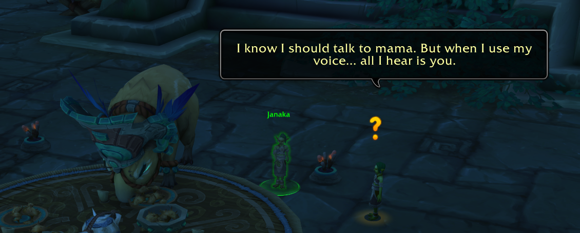 >>559437382The new lore is that the amani are strugglling to reclaim their homeland against the invading elves, and that the Loa are pissed about the manner in which Jin used them previously, which has left the tribe very weak and powerless since we killed him.