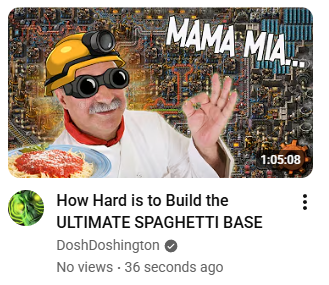 I'm not surprised Dosh liked making a spaghetti base. It requires creativity and the entire challenge is to find how to squeeze things when you really don't have any space. But I don't see him squeeze belts through unrelated arrays by using undergrounds so it's only a 3/10 spaghetti.