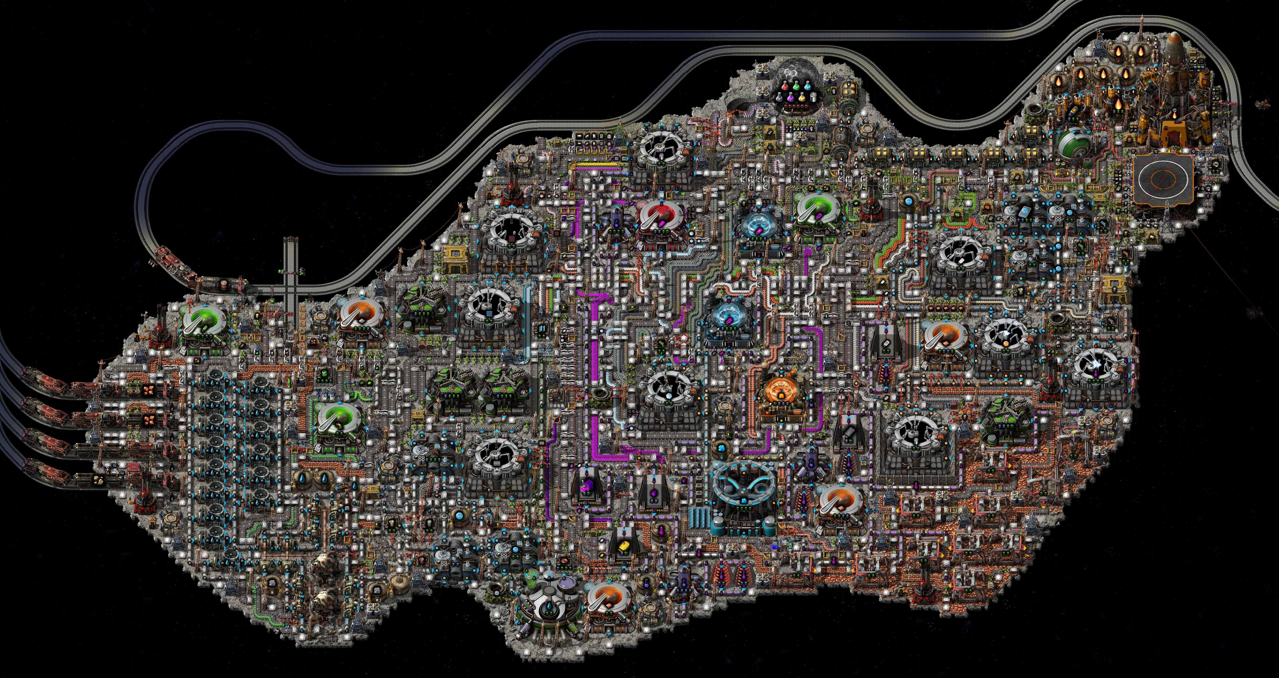 >>559518756The point is that you are being forced to think about long trains vs short trains and locomotive ratios, and station layouts because they remain constantly shitty while your production expands exponentially. It's a problem-solving game and you've been presented with a new problem that's a natural product of your own success. It's elegant game design. You can always just belt all your stuff or make A to B loops and weave them with overpasses.