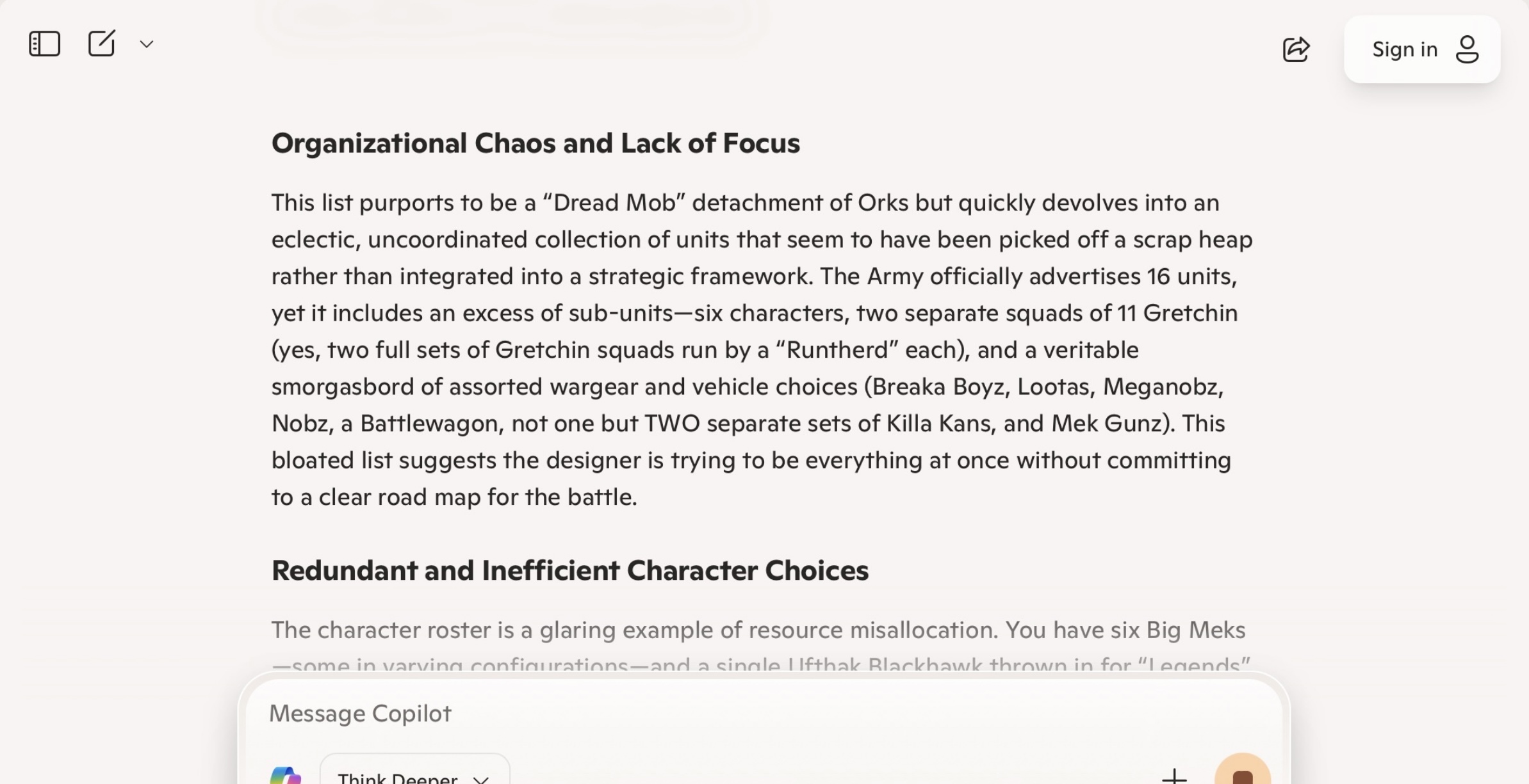 >>559515484NTA, But I’ve had AI give me weird schizophrenia answers and then. AI just seems genuinely bad at recent events and small topics. It’s months back but I mentioned my dad using Chat GPT to try and find out who the new principal of a local school is. It completely hallucinated two random people that had “long distinguish career and had been with the district for years.” When he asked it for a picture it gave random old men and a student. Here’s an example of it randomly insulting me and my models when I asked it for advice building a Warhammer list. It going weirdly hateful and recommended I play units that where meta like a decade ago as opposed to units the list actively uses right now probably because it found old forum post from a decade ago about what was good and what wasn’t