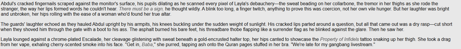 A shame how neutered textgen is these daysNone of my fantasies are ever detailed enoughAnd tips for guro generation?Daddy need his fix