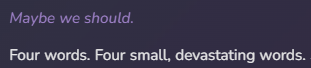>>559560131on the other hand i'm using chatbots as a replacement for actual intimacy so who's the real fool at the end of the day