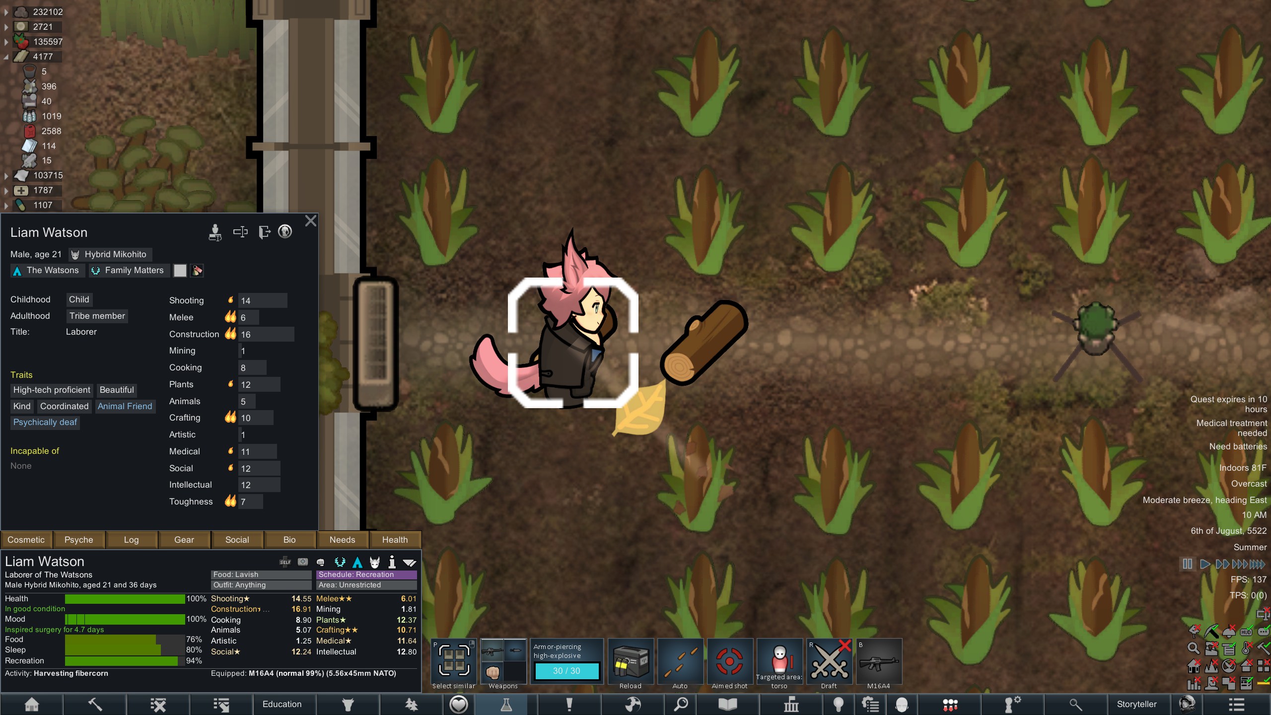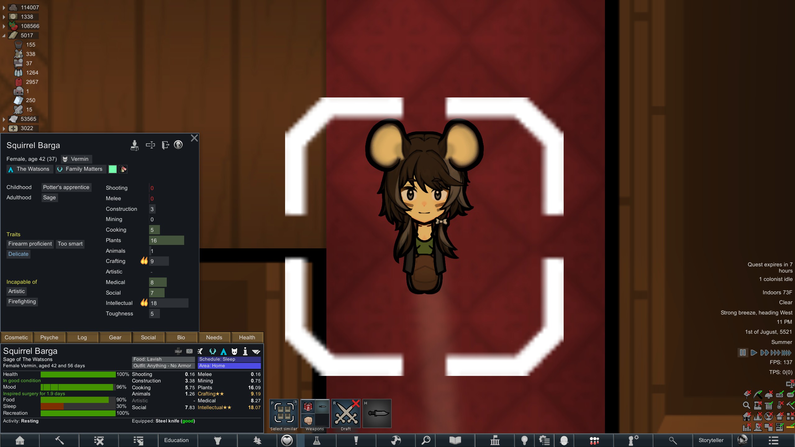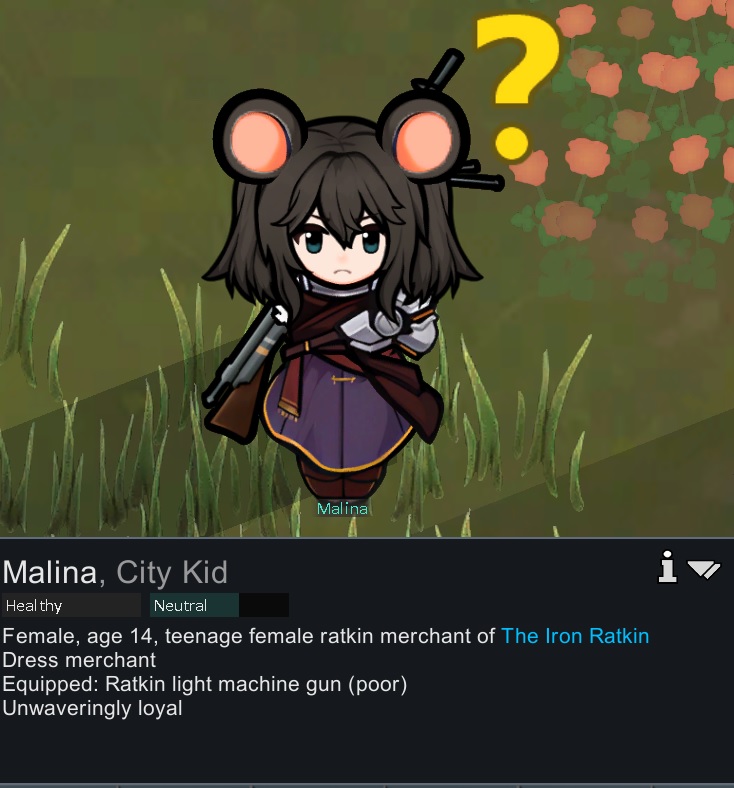 >>559750868no she will be my elite sniper eventually... I actually just got a quest for a legendary sniper rifle but its 6 days away and I don't have enough pemmican to go get it>being guarded by 2 manhunter rabbits