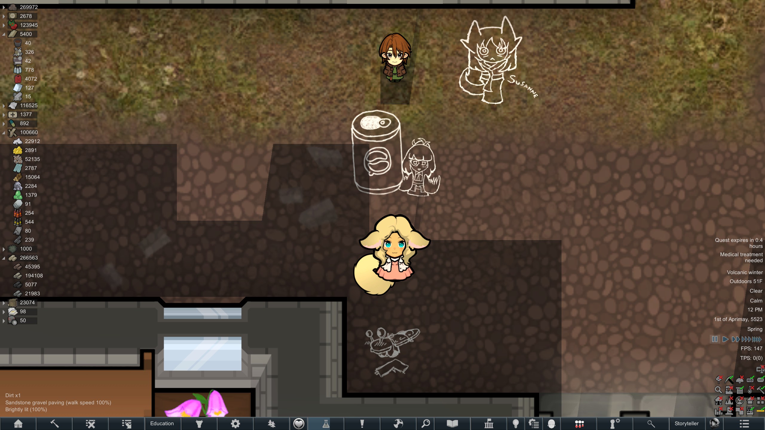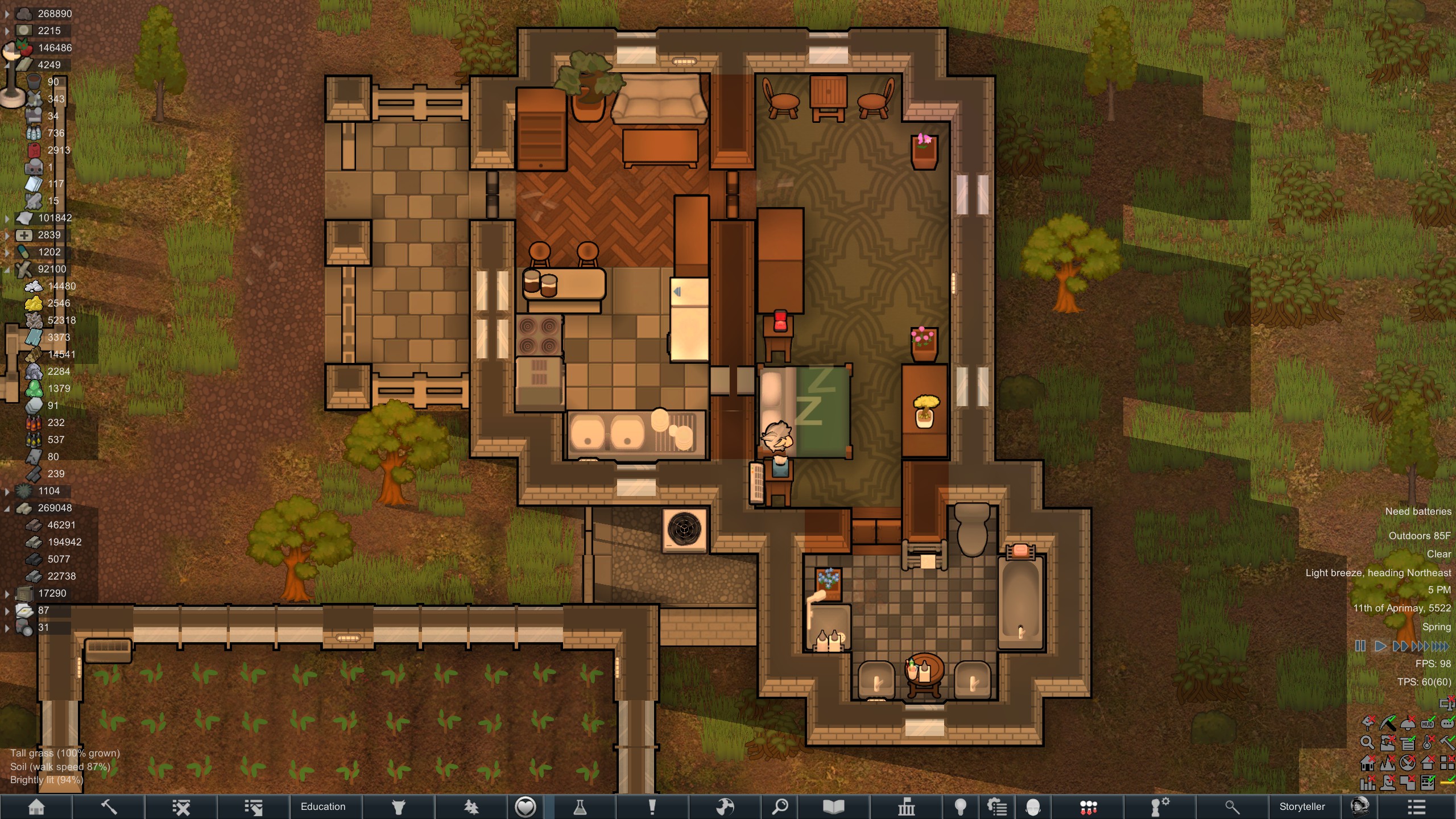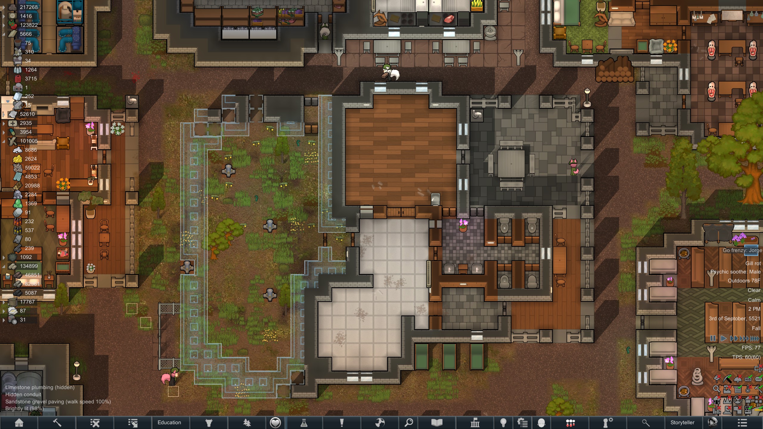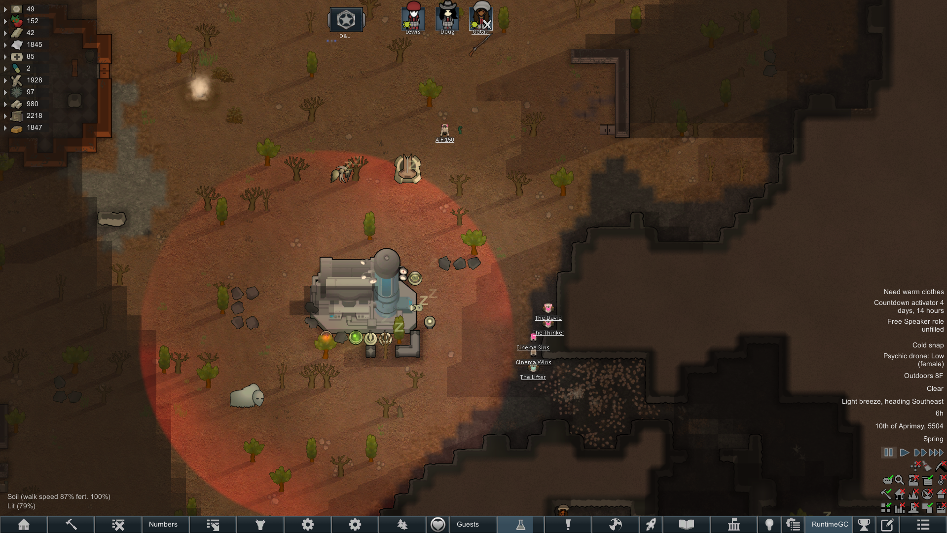 >>559734289I have begun frivolous construction again, I have pathed the entire base with packed dirt, and am now building a proper outer wall for the first generator. The Blazebulbs grew in so I'm not completely out of control of engaging a mechanoid cluster next time.