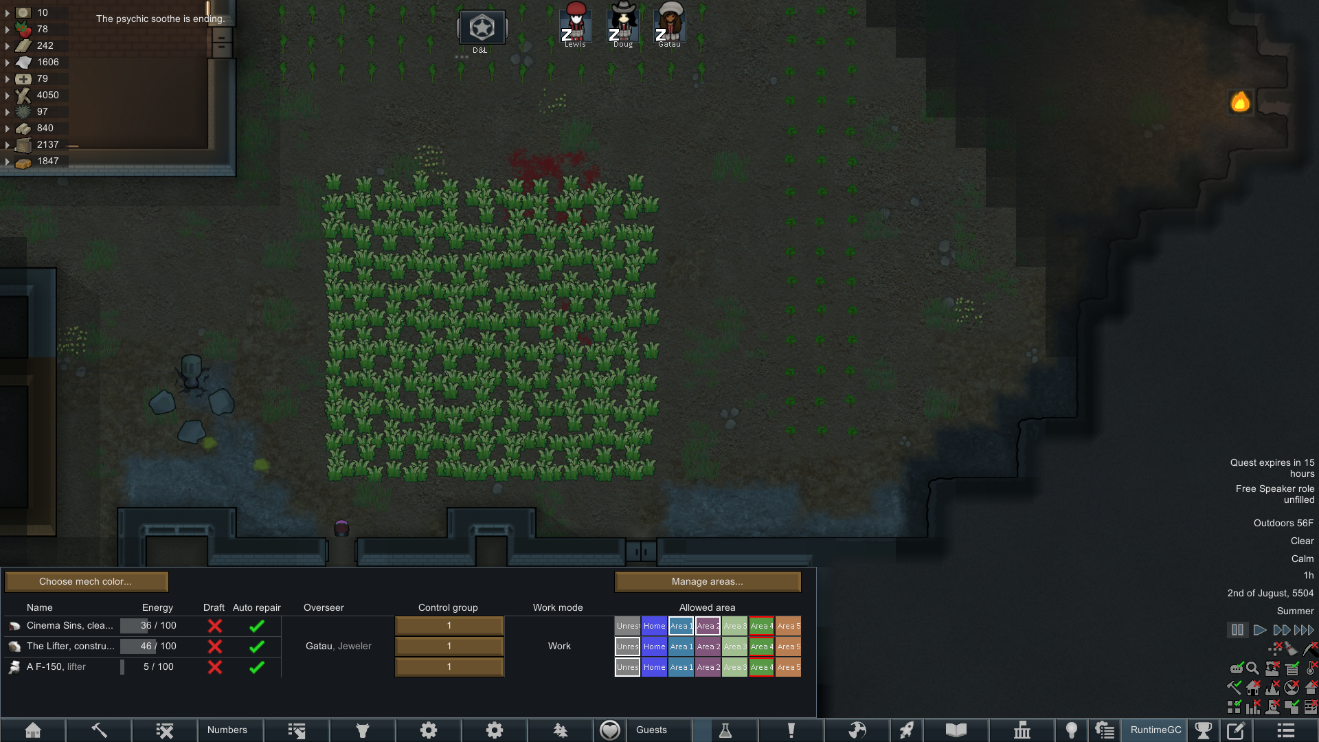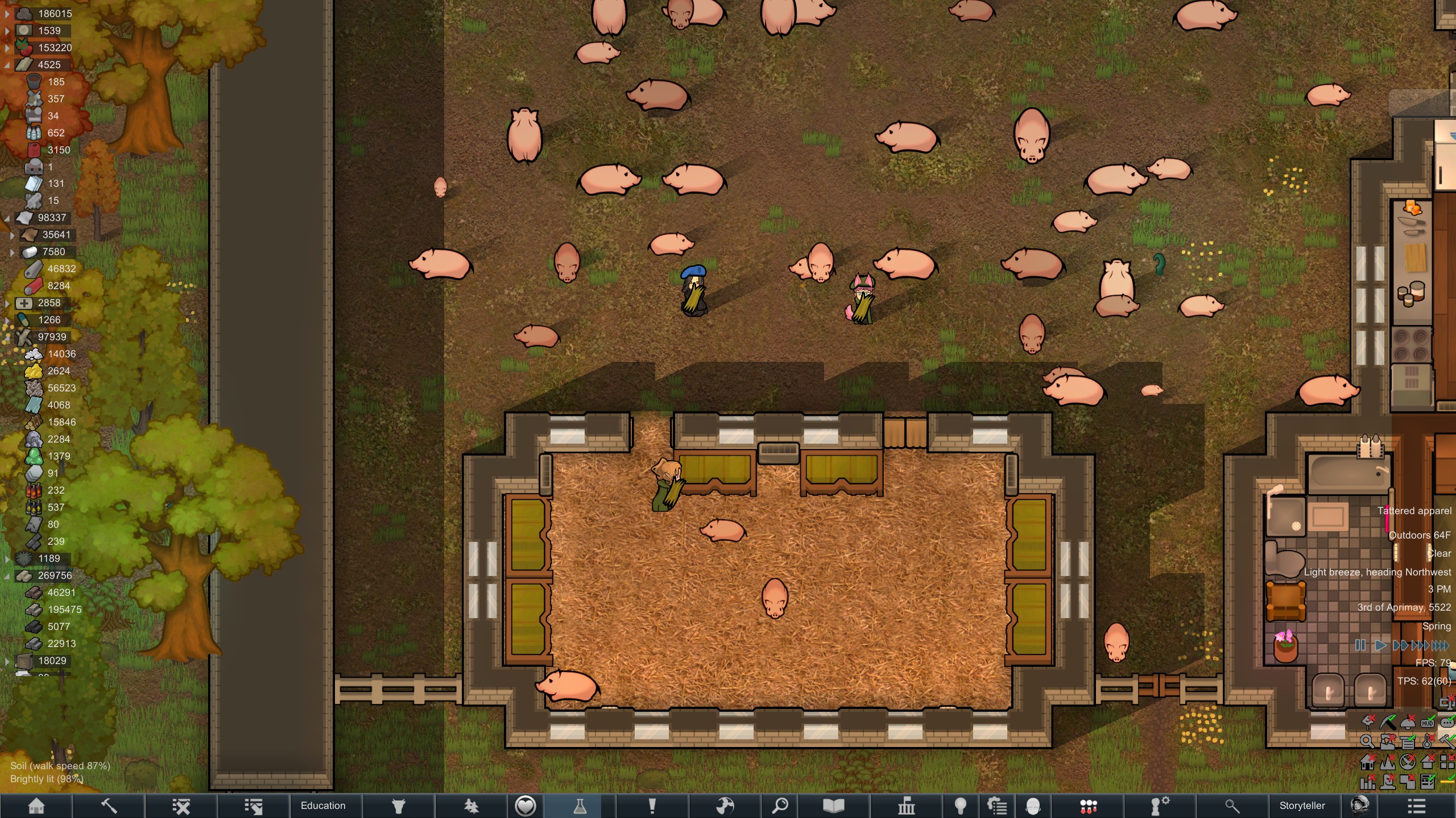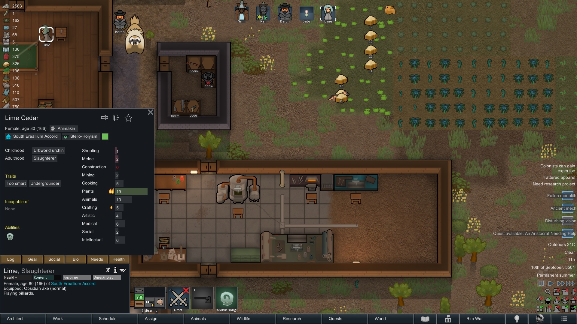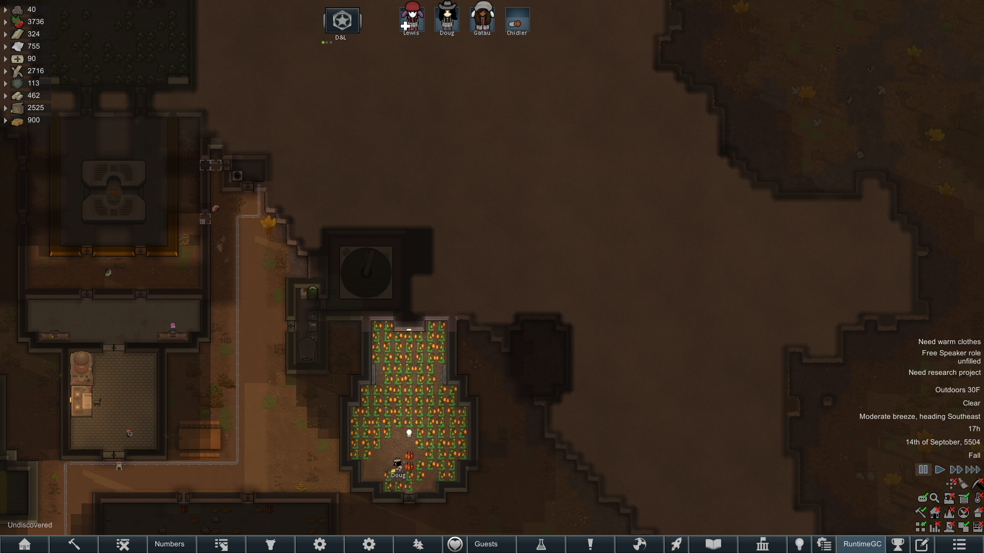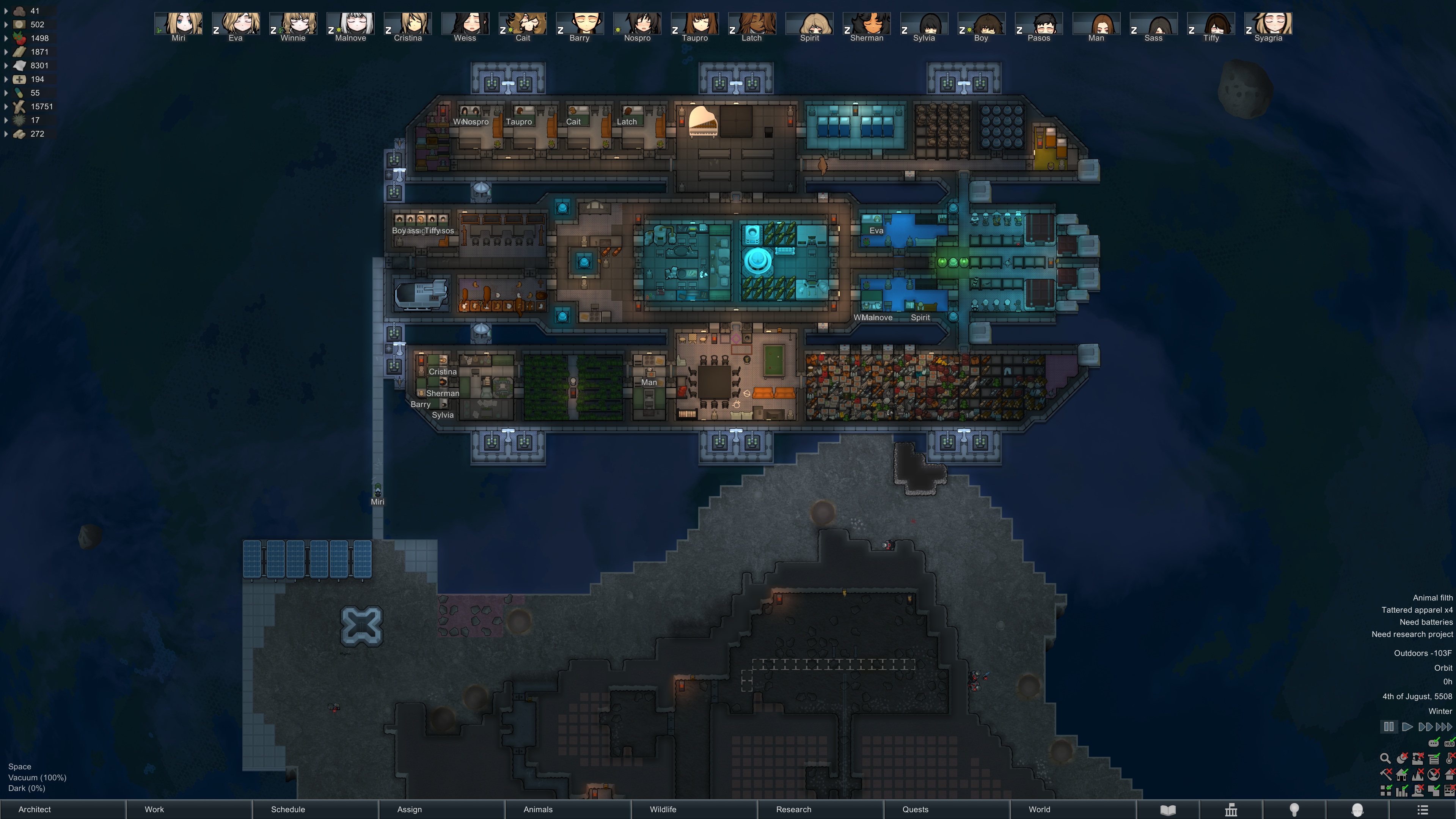 Still trying to progress in this colony but its just been going pretty slow.but at least I have some goofy looking researchers now since techfriars from empire expanded dress like this for some reason.