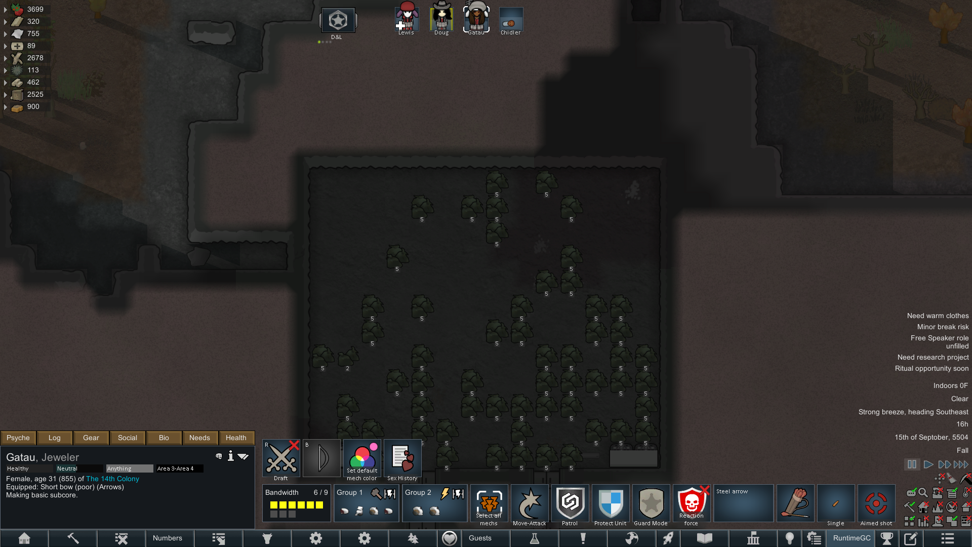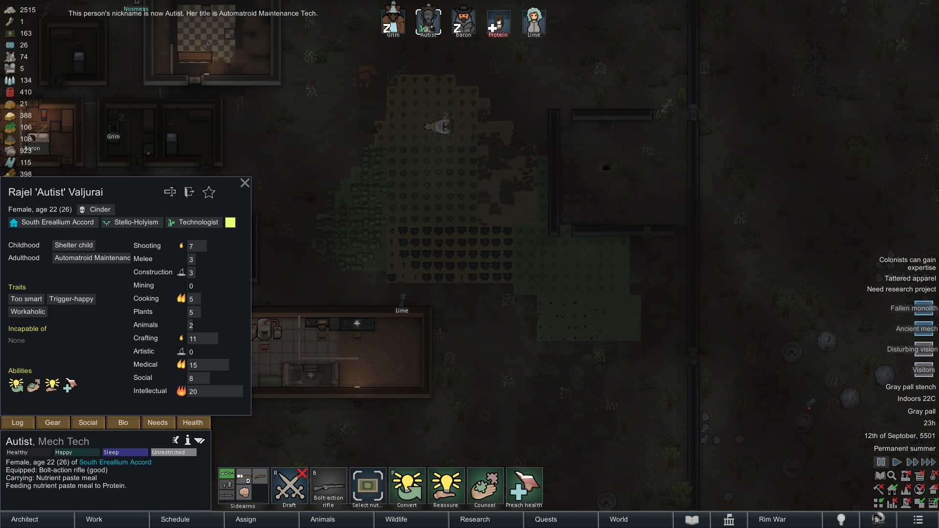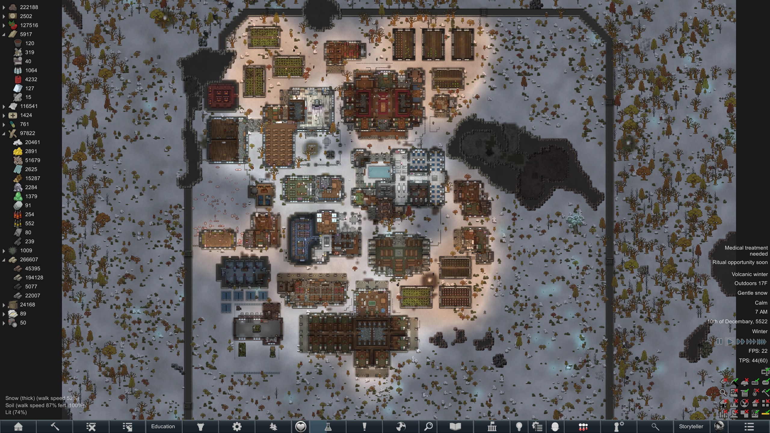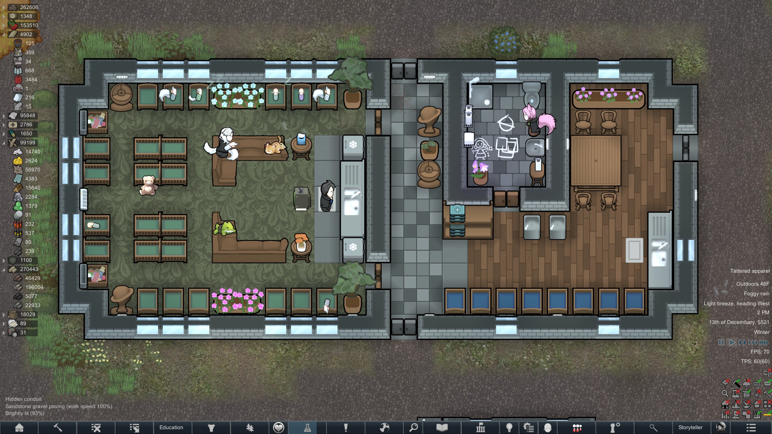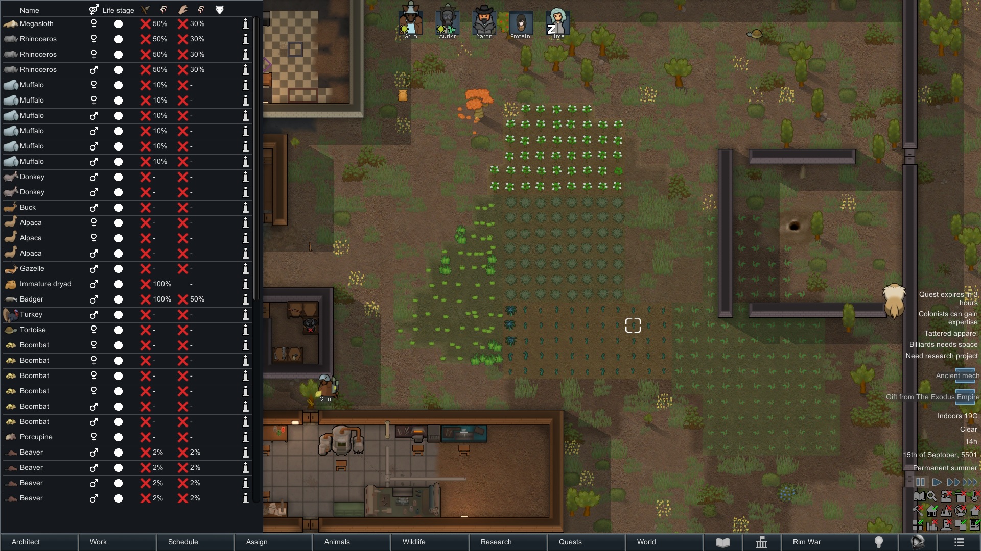 Still trying to progress in this colony but its just been going pretty slow.but at least I have some goofy looking researchers now since techfriars from empire expanded dress like this for some reason.
