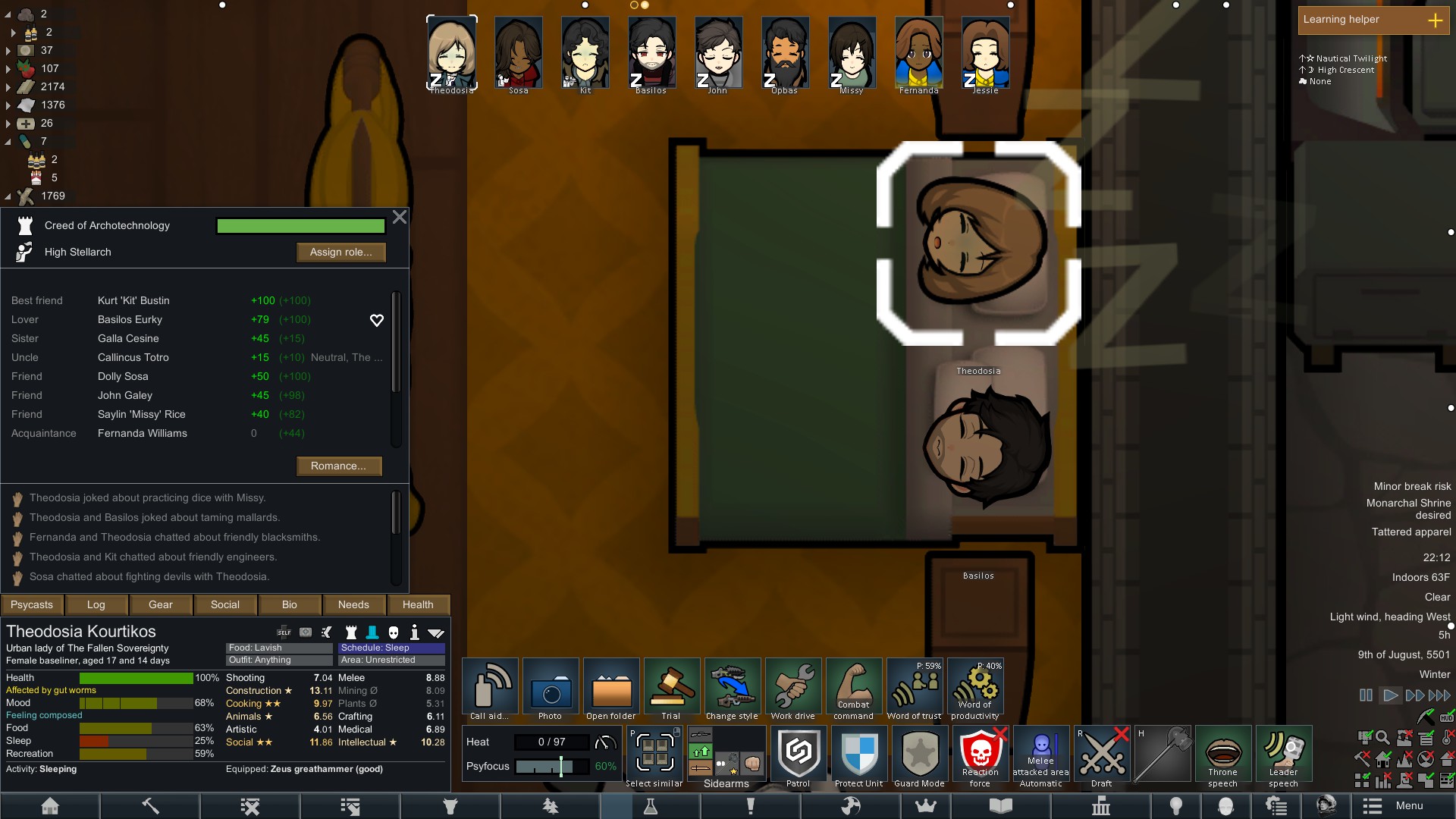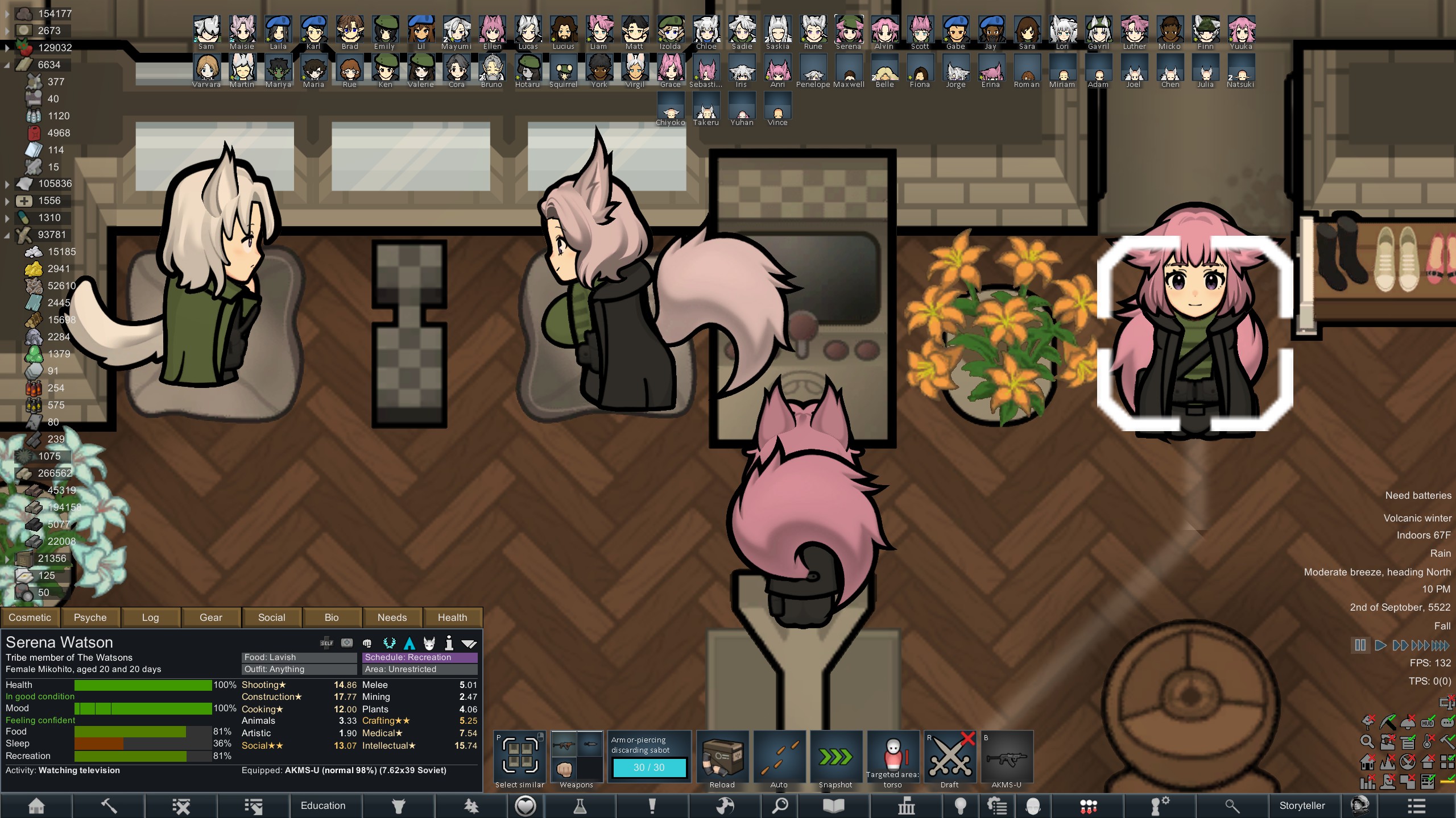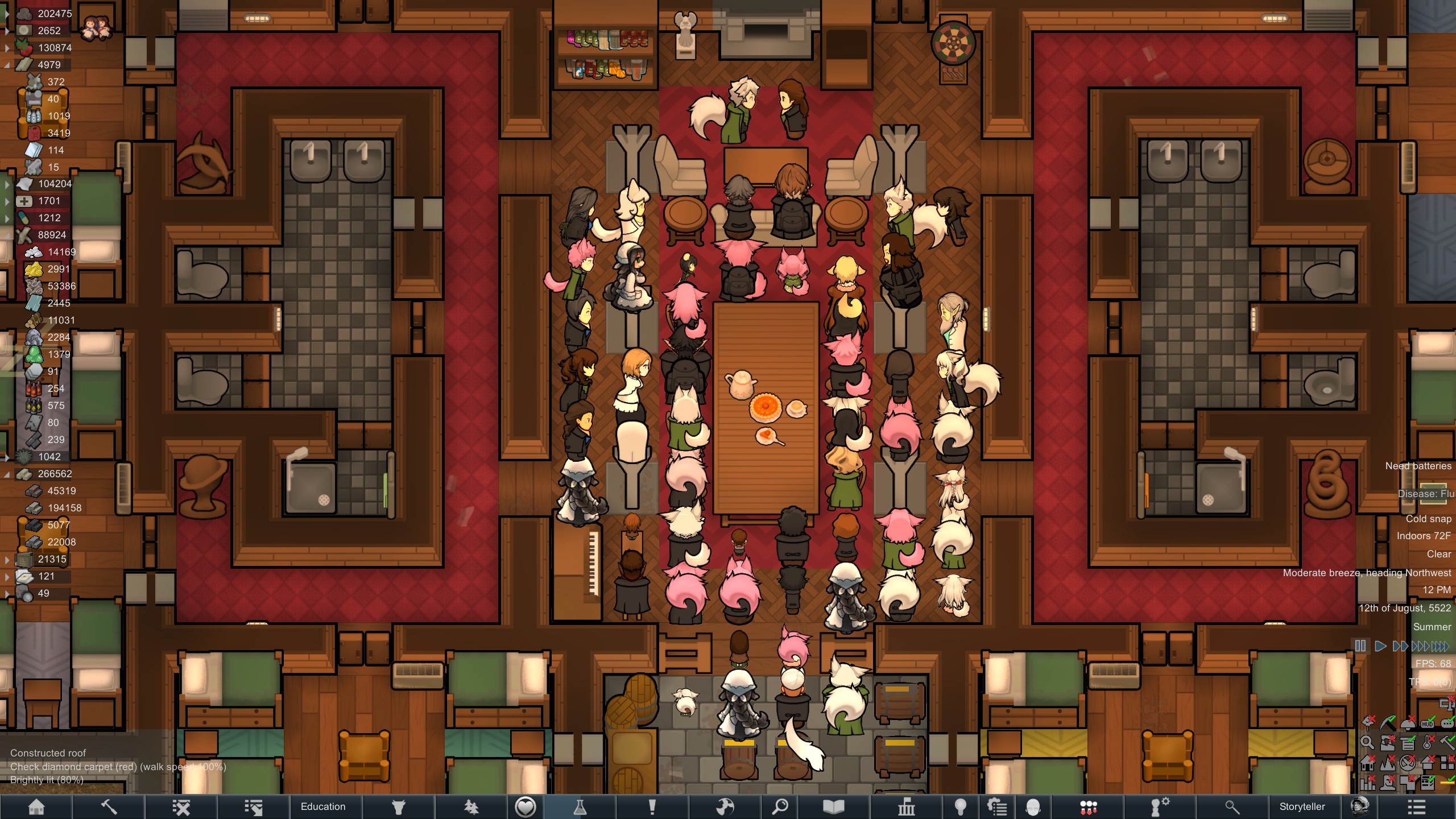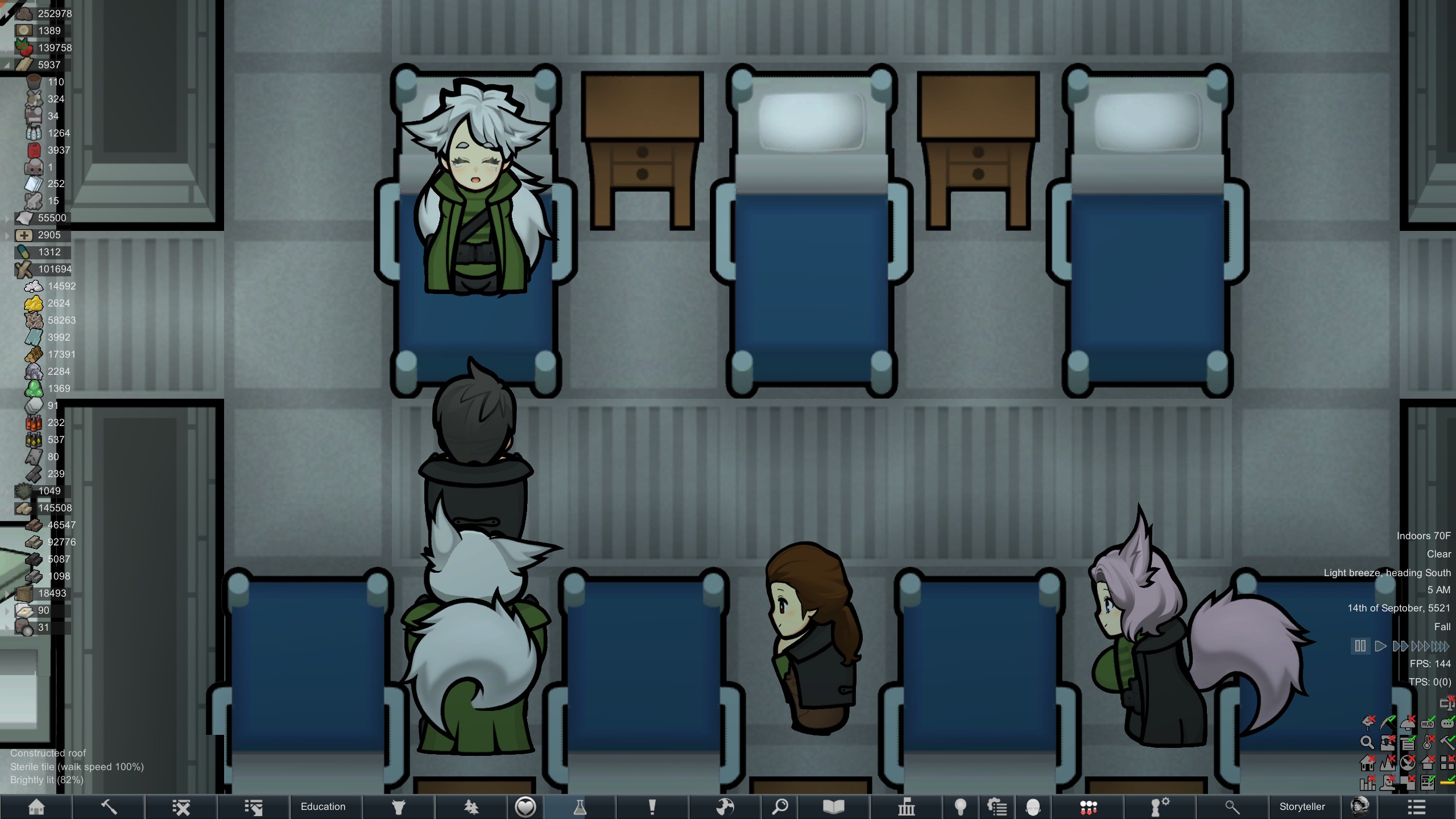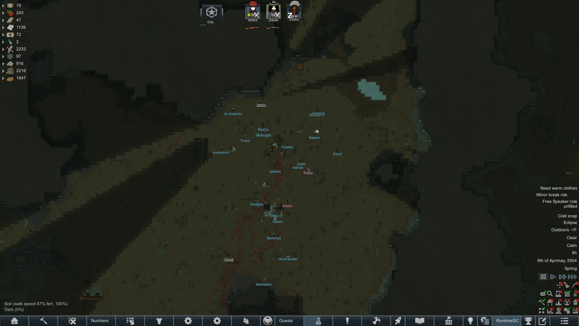 Still trying to progress in this colony but its just been going pretty slow.but at least I have some goofy looking researchers now since techfriars from empire expanded dress like this for some reason.