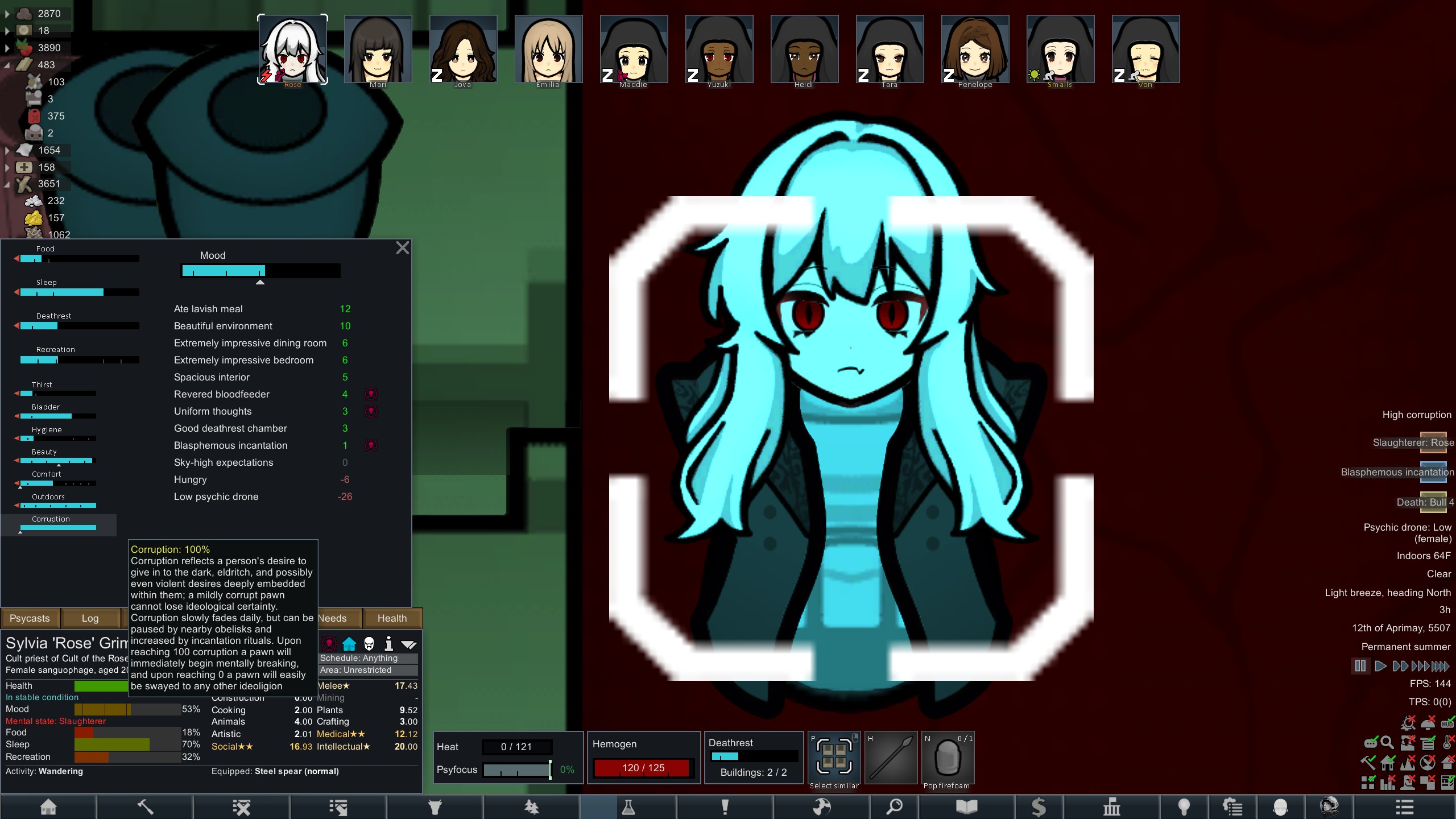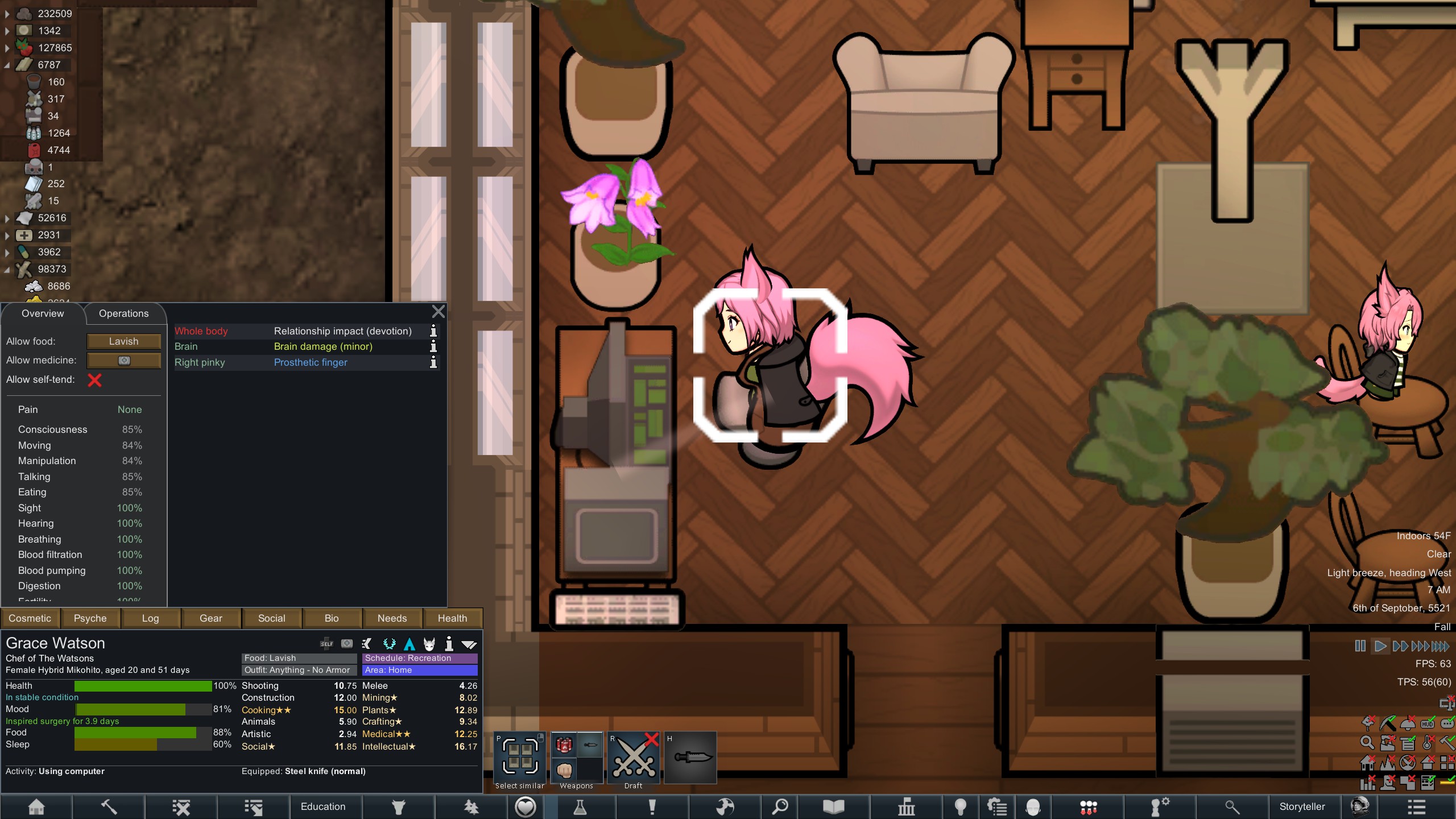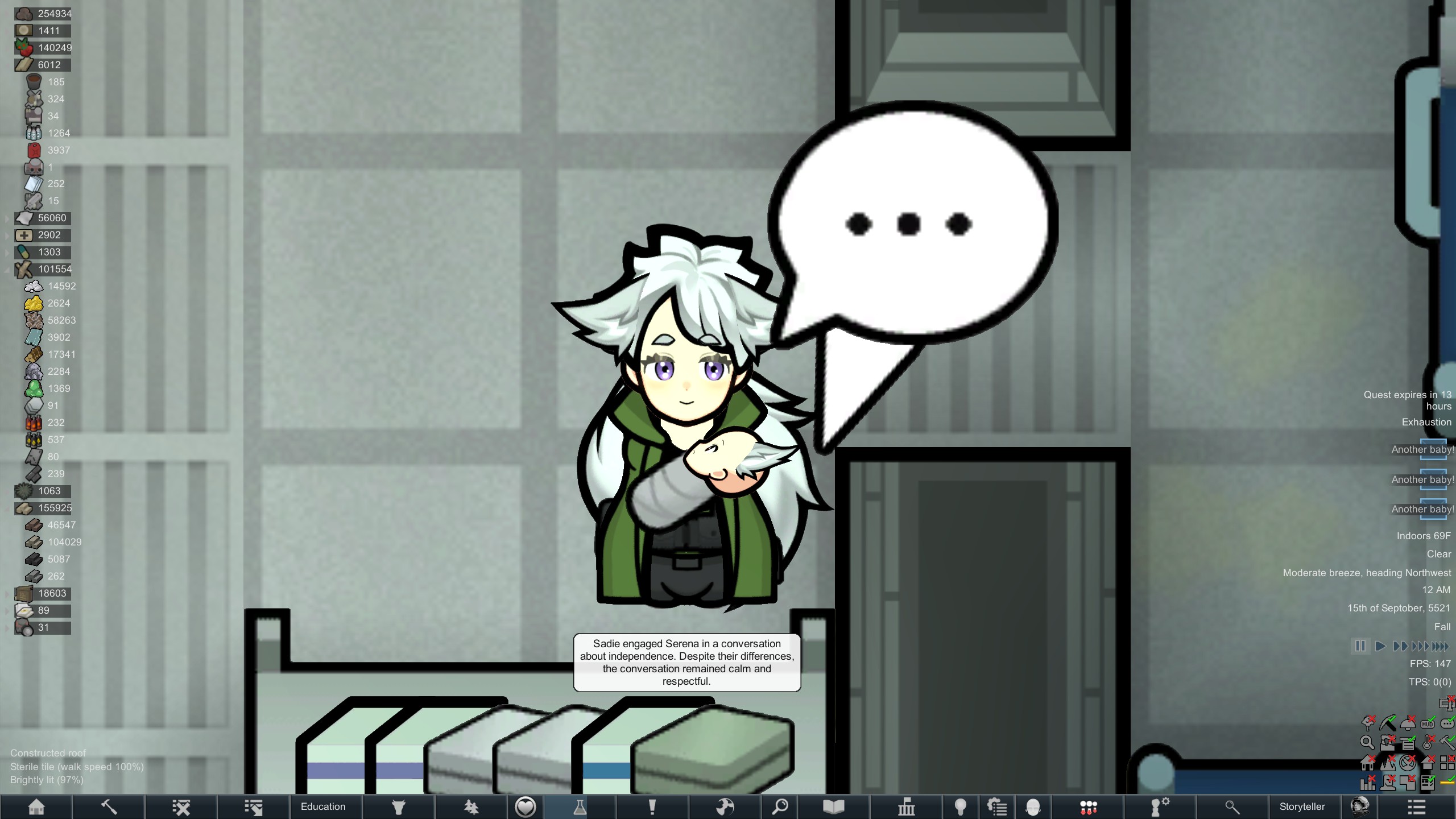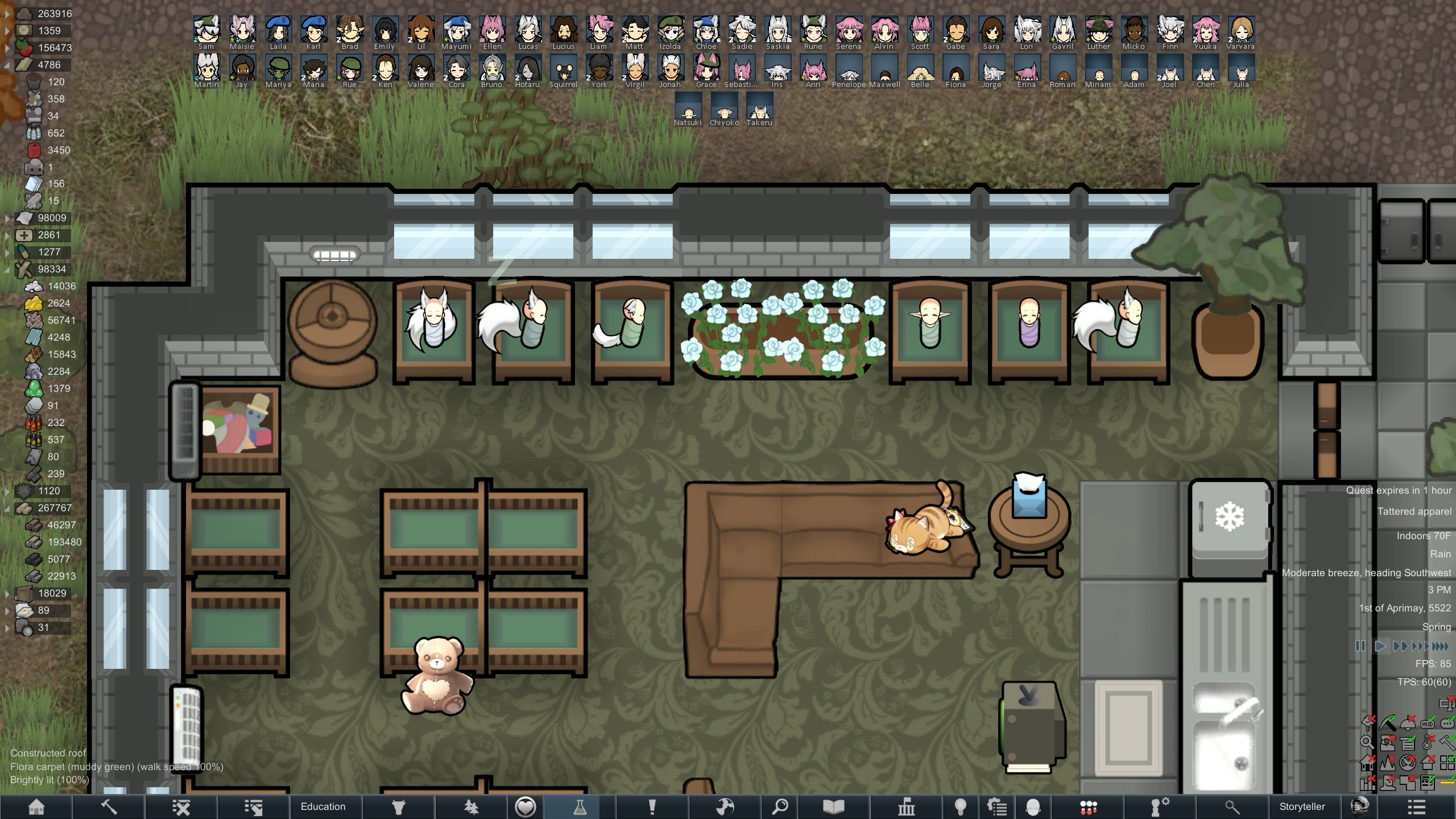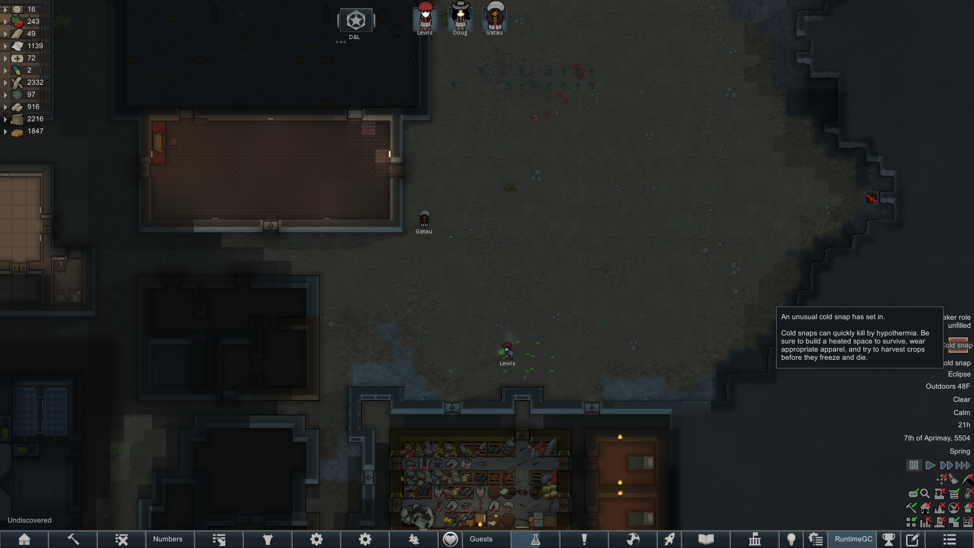 Still trying to progress in this colony but its just been going pretty slow.but at least I have some goofy looking researchers now since techfriars from empire expanded dress like this for some reason.