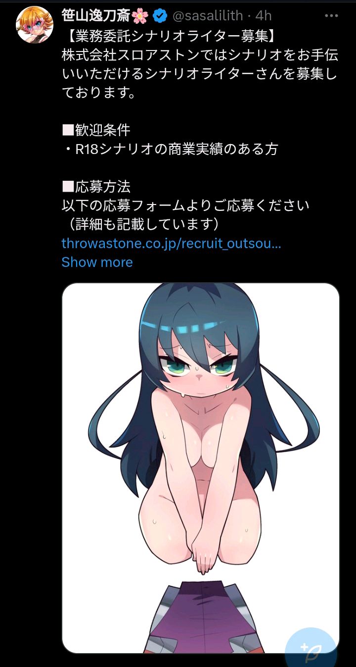 Lillith is recruiting freelance (+18)scenario writershttps://www.throwastone.co.jp/contact.phphopefully its for an actual game and not more gachaslop-asmr/drama cdslop