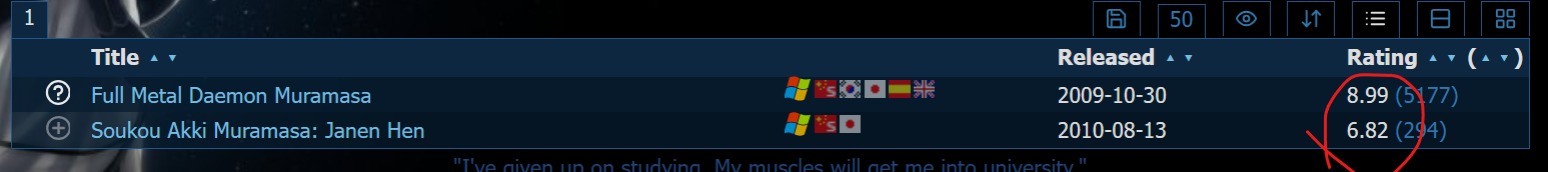 Steins;Gate: 9.02Muramasa: 8.98Nooticing