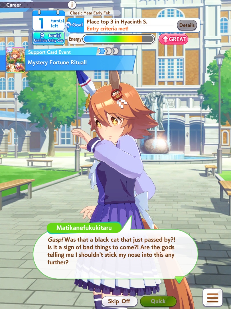 Current Scenario: Aoharu Hai aka "Unity Cup"