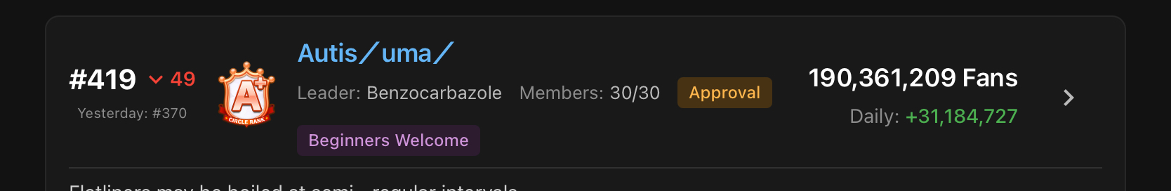 You must be E3 (20k points) to join a circle. Apply with /uma/ or /vg/ in your profile or post ID in the thread.