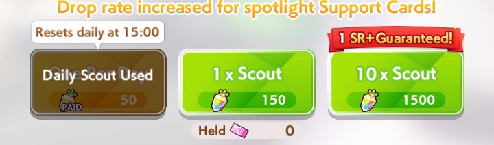 Current Rate Up Support Cards: Kawakami Princess (Speed), Fine Motion (Wit)