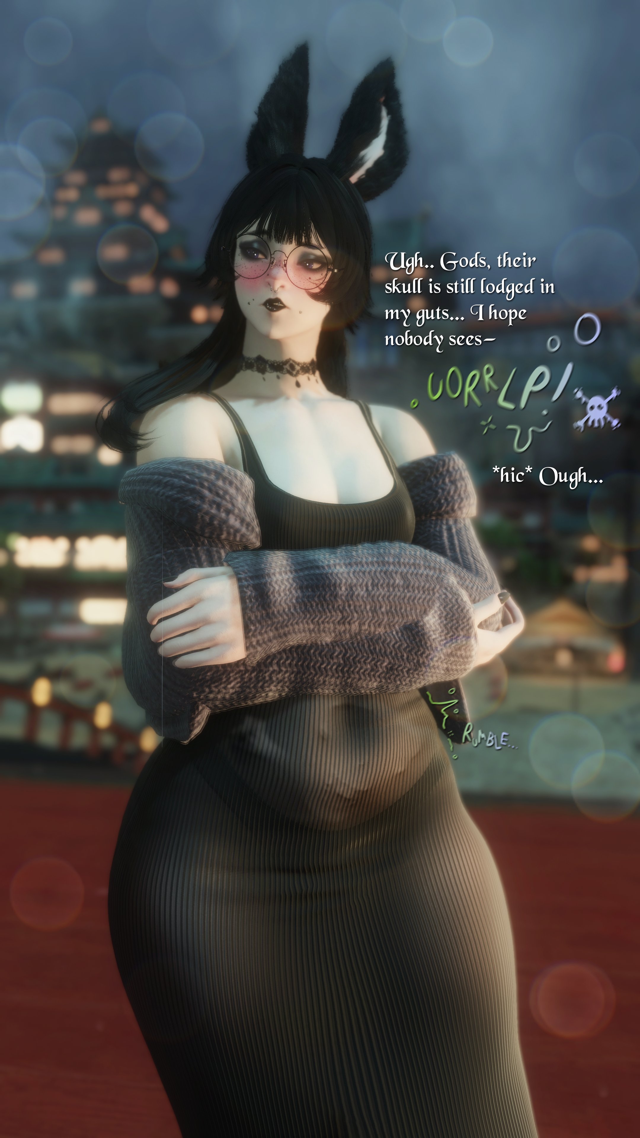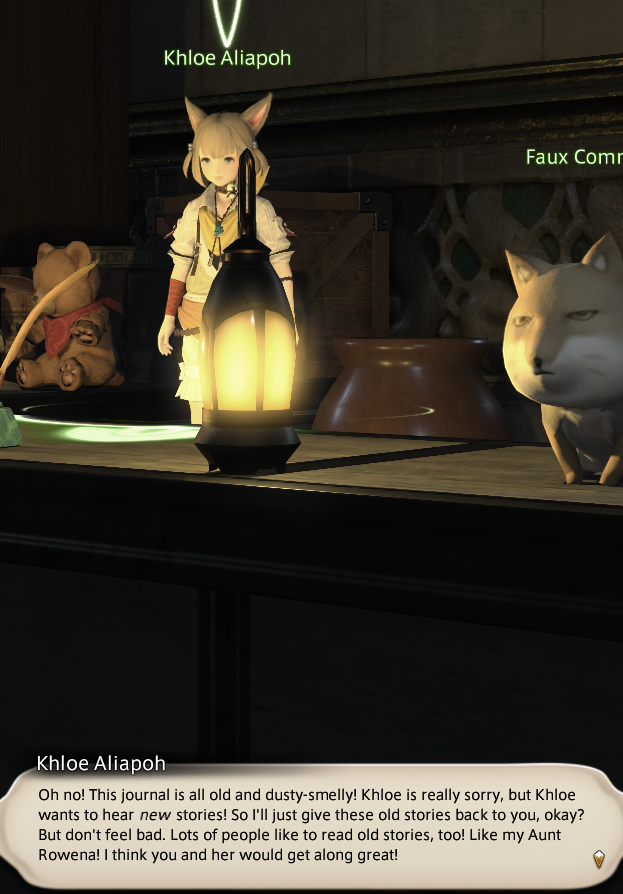 >slicks out from the shadowsbehind you>"Anon please take care of yourself. I hope you don't mind unprompted advice, but when I came out of the cupboards yestersay, I noticed your food stockpiles had dwindled. Also, also - you don't look too comfortable when you're asleep; seldom times, you seam to scream or snore. Perhaps, check the local physicians upon your next visit to the Firnament or consult a mage in Gridania for a proper dietary plan. Remember to keep hydrated, and remember to take some time off for self-care. Uh- um, tbat is if you want to. You look so tired all the time, I just assume it was work related... Okay, going back into the wall crevice, goodbyyye..."