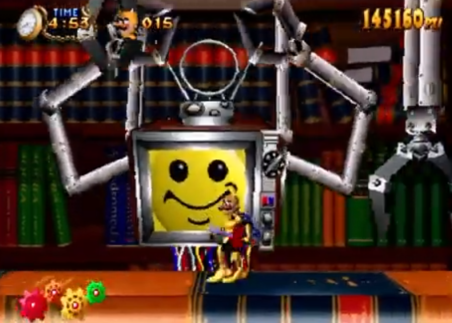Just beat clockwork knight and the final boss was a television with arms with a smiley face on the screen that creepily flashes into more disturbed expressions. BRAVO TOBY FOXhttps://youtu.be/eb0UpMb_UMc?si=8ly6VfrMNgB64oCE&t=51