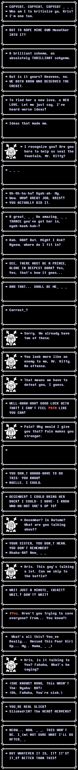 Well-rested editionPrevious sleepover: >>559459683 Spoilers ahead, proceed at your own Frisk.-DELTARUNE CHAPTER 1-4>https://store.steampowered.com/app/1671210/DELTARUNE/-The Old Game>https://undertale.com-The Old Game's Demo>https://undertale.com/demo-The New Game>https://deltarune.com-The New Game's Progress>https://toby.fangamer.com/newsletters/winter2025/>https://toby.fangamer.com/newsletters/>https://deltarune.com/#news>https://www.twitlonger.com/show/n_1sqn3p9-Merch>https://www.fangamer.com/collections/undertale>https://www.fangamer.com/collections/deltarune-Books-Undertale Artbook>https://pastebin.com/1MRmU0Gk-Legends of Localization - Undertale>https://pastebin.com/DkZaXMpi-Extra Content>https://undertaleqa.tumblr.com>https://undertale.com/alarmclock>https://deltarune.com/sweepstakes/>https://toby.fangamer.com/newsletters/-Undertale/Deltarune Text Dumps & Screenshots>https://pastebin.com/WG9u1fvH-Undertale Image Collections>https://pastebin.com/g2JqH6Ba-Booru>https://utg.vidya.pics/-Recommendbin>https://pastebin.com/fsqd5Sa6-Writebins>Current: https://docs.google.com/document/d/1ZaYVvltQ_Rmf-ggszf1bwmYDW2NUcfpTYU7JzfyMhVE>Old: https://writebin.surge.sh-Comicbin>https://pastebin.com/UJpBYSEE-Fangamebin>https://archive.is/iSiFg-/vg/ League team>https://implyingrigged.info/wiki//utg/-Wanna change the font?>https://rentry.org/utg-font-Current whiteboard: https://r2.whiteboardfox.com/25513136-2769-4770-Previous whiteboard: https://r2.whiteboardfox.com/25501790-9662-6210-Current Magma: https://magma.com/d/3B5chWd0Vh-Previous Magma: https://magma.com/d/QiFH9rWyRh-WorldOfText: https://ourworldoftext.com/utg-Pippins Wiki>https://utg-pippins-ocs.neocities.org-Thread Template (make sure to paste the current whiteboard links)>https://pastebin.com/rTN8SxAw
