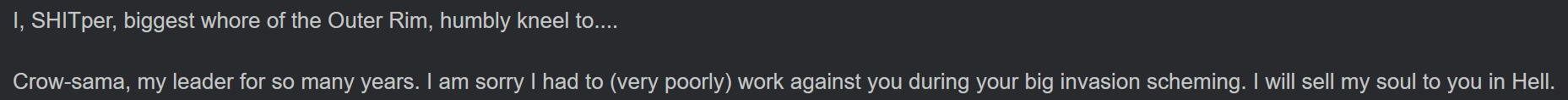 I think its funny that people will roast SKK for being so forgiving of all nikke he becomes a retard and will overlook obvious traps, betrayals, and make the worst choices...and then come here and talk about how amazing crow is