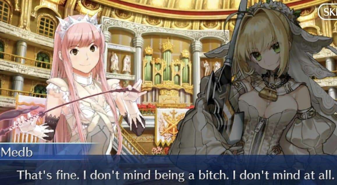 >>559549907As your "bro" Medb would convince your waifu to cheat on you and get a massive kick out of it