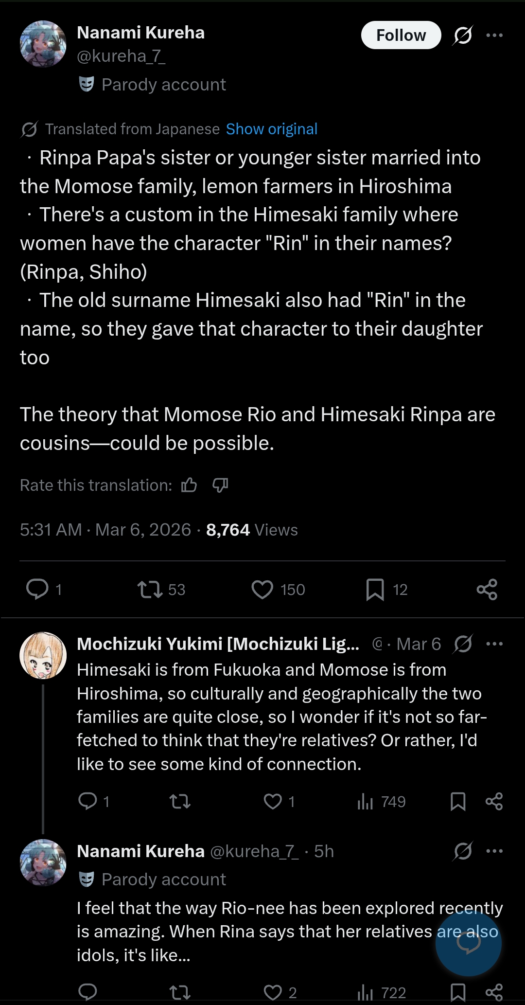 >>559586254I think GK is still building their characters, important idol-idol interactions and what not. Once they get it out of the way they might explore other scenarios or backgrounds.I have the feeling they'll start with Kotone's and Rinami's family, Kotone's siblings already appeared.