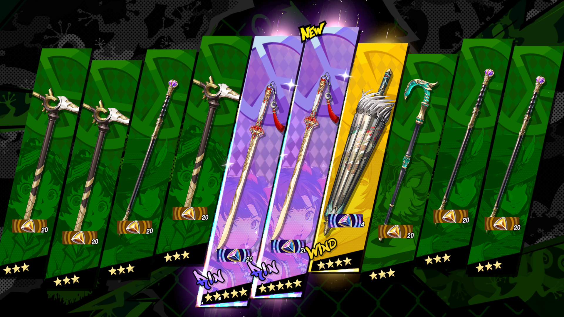[2/13-3/15] Entropy (Mio Natsukawa-exclusive) *5, Abyssal Thorn (Mio Natsukawa-exclusive) *4, Crime and Punishment (Motoha Arai-exclusive) *4, Shadow Crowns (Tomoko Noge-exclusive) *4, Moonlight Needle (Riko Tanemura-exclusive)*4