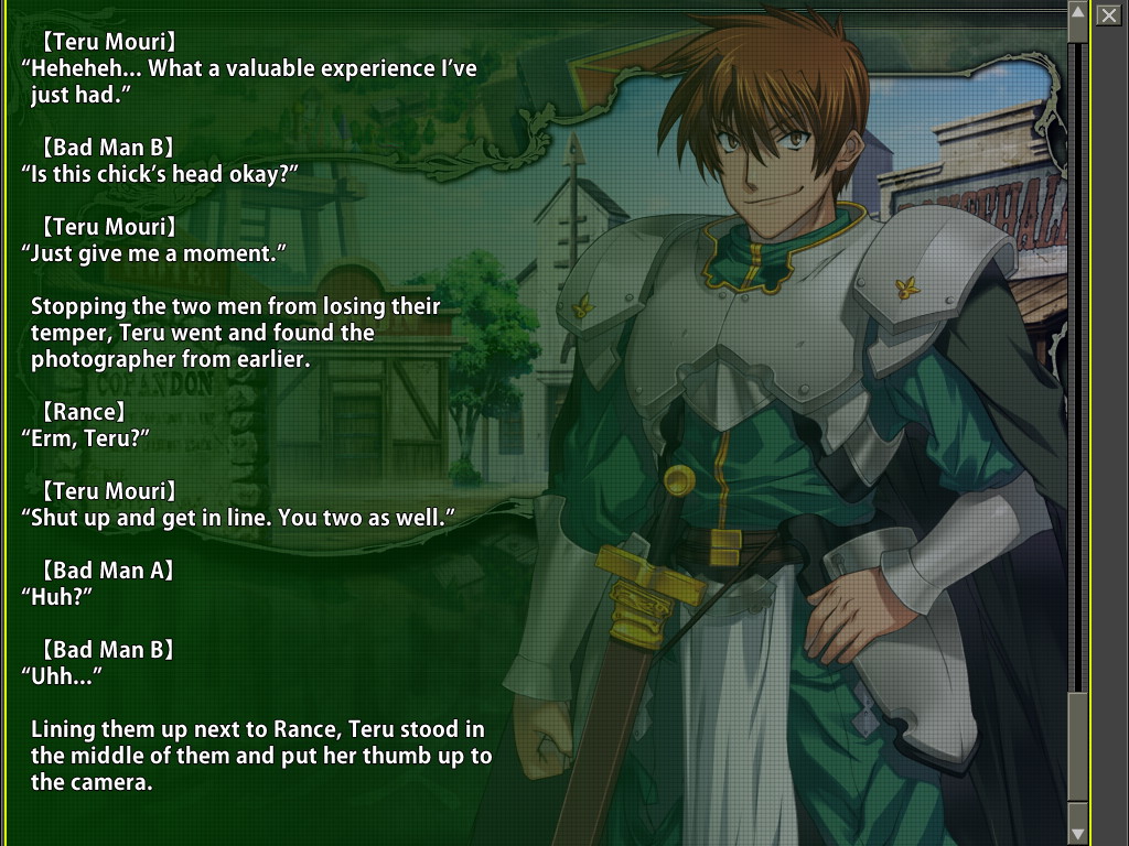 Using the nose bleed to give a reason to transition to the smile CG was a master stroke. Suzume's smiling sex was well written. Could've gotten tears from me if they didn't play the very end of the quest for comedy. That was the saddest a Rance game has made me.