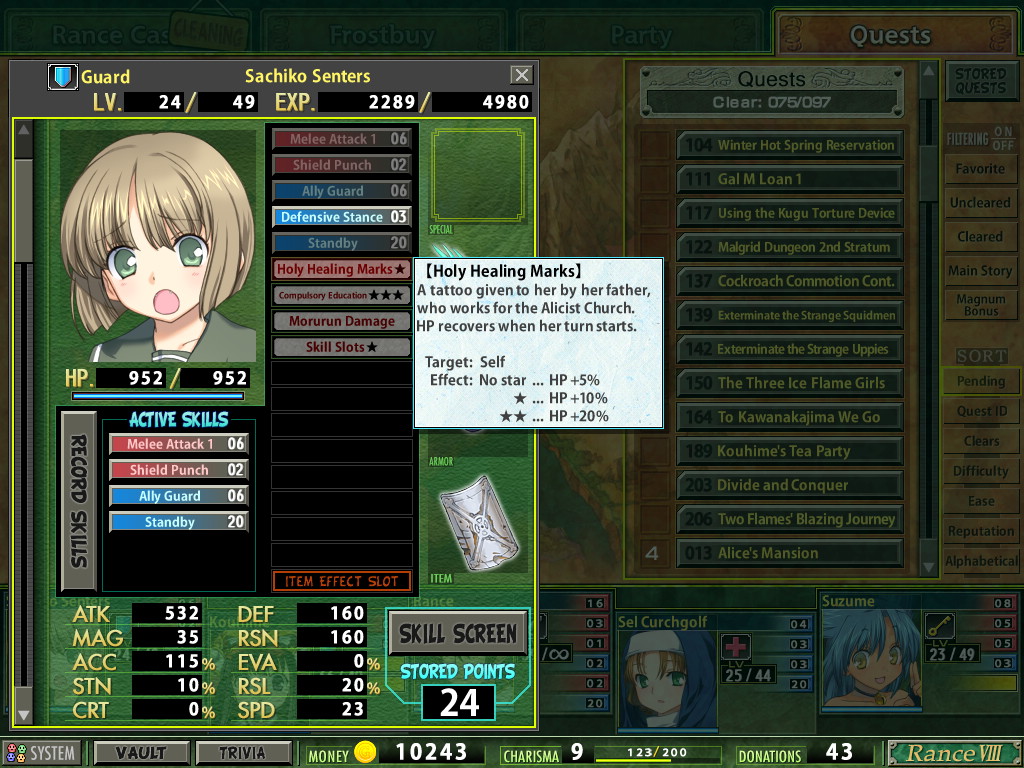 Quest time!Feels so bad to see Sachiko at level 1. I can't remember what I'm planning to do now.