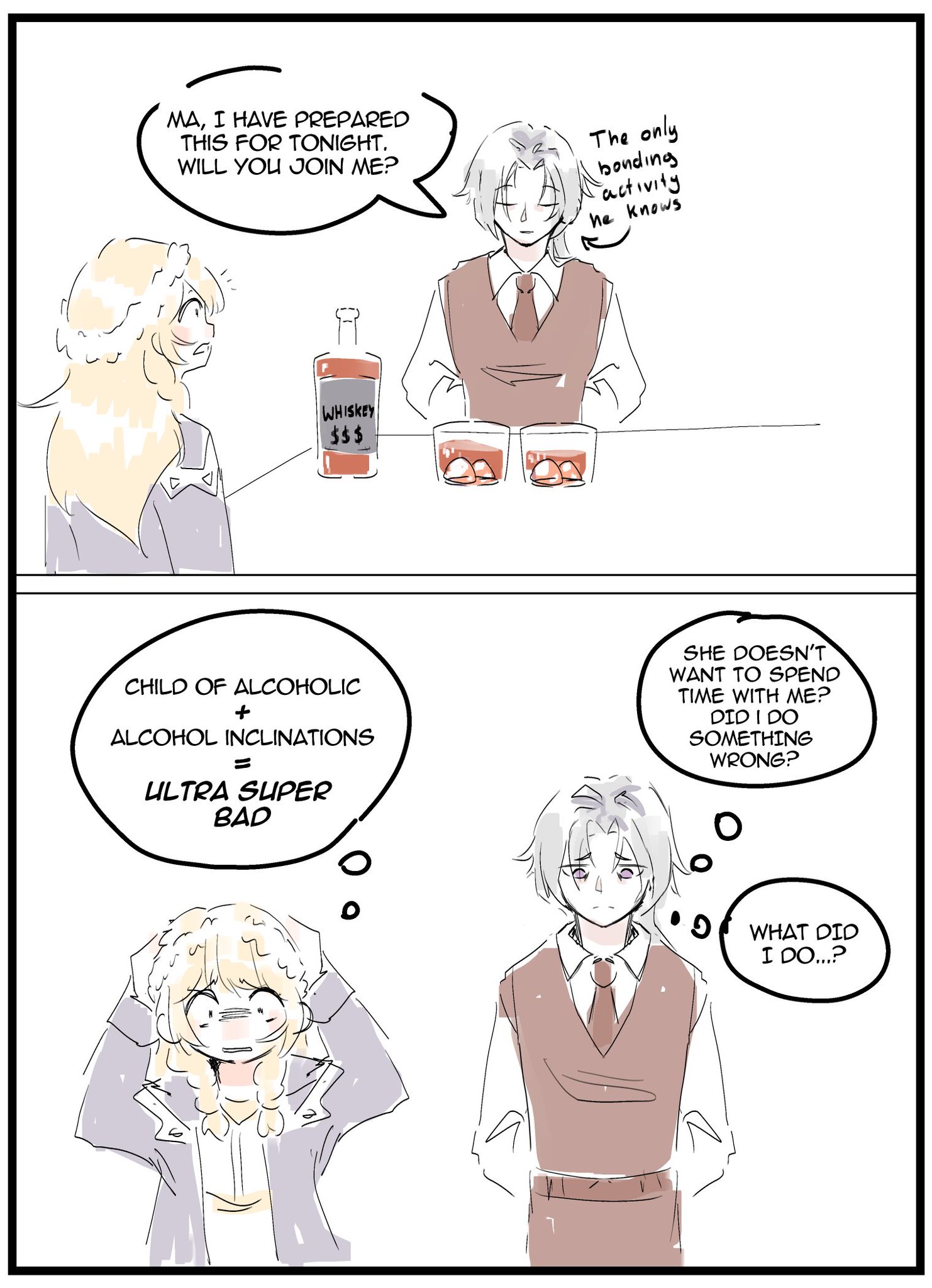 Gregor as a single dad and kinda sucks at it, but he's trying his best. You are his emotional anchor into not killing himself in any way he can.