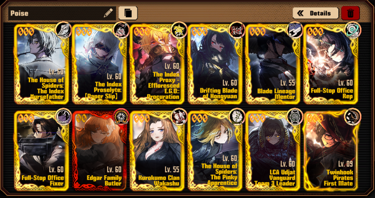 >>559611646The only reason I've put Faust in is because her debuff counts as Bleed for a Bleed team, that way it's Bleed-Poise, and not just pure poise. If I wanted pure Poise I'd go with Fullstops and Maidshu