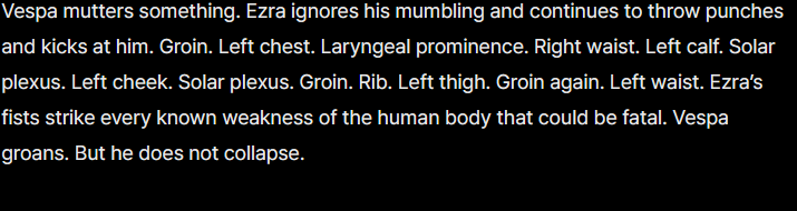 >>559620810>Sure, come inThe Thumb Capo she says this to in the novel gets her head exploded in one punch by the gigachad old man