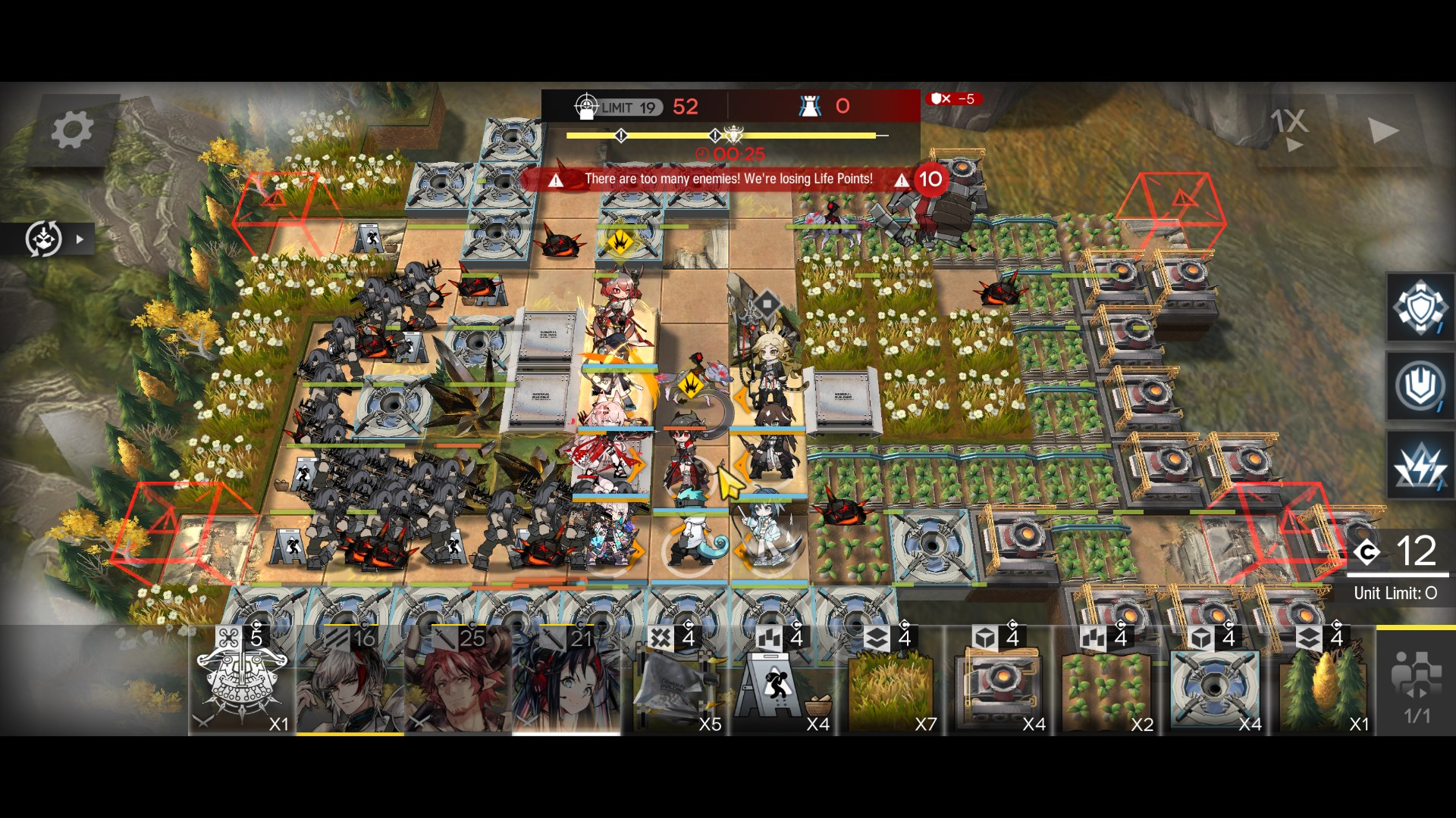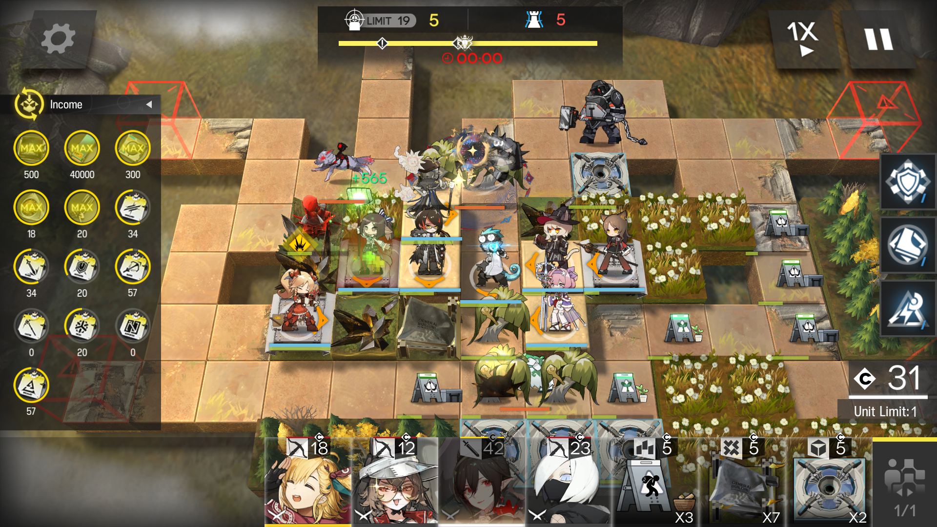 >>559600750I did it earlier too.River, rock // Archive, recycler // altar, fae lab, village // surveyor, ruinsNuthugged bottom right and built 6 outposts to the south away from the schizo flowers. River spam generated vanguard/guard and sniper/spec plus bodies to kill for prod devices. two cycles of the recycler on the harvested originium to max out the roll rocks. Archive on unused tiles on the far left with 2 teleporters maxed out caster/supporter. after rocking up the originium I did 3 villages on the rocks above the bottom lane for more defender/medic chips. recyclers to cap the tech tree things and pad kills/tree fodder to get more prod devices. The fae lab only popped a couple times cause they suck. Let everything run a little extra to help cap skill handbooks and training handbooks which ironically were the last to capHitler and Mumu handled mining the originium in the middle then left hitler to potshotting spiders. Took mumu out when she was done. Amiya works instead of mumu though so it's guaranteed ops still.Killbox in the bottom I had e2 pinecone, e1 passenger, e1 purgatory, e2 arene, e2 silverash, e1 warfarin, e1 eunectes, then redeployed amiya. Once I finally got all the outposts built I ramped up enemy spawning and added more teleporters to help keep the map cleaned up. Had one funny attempt where I built the archive before I had all the teleporters for it so I had like 3 shielded aoe casters on a tile warp in and light the place up