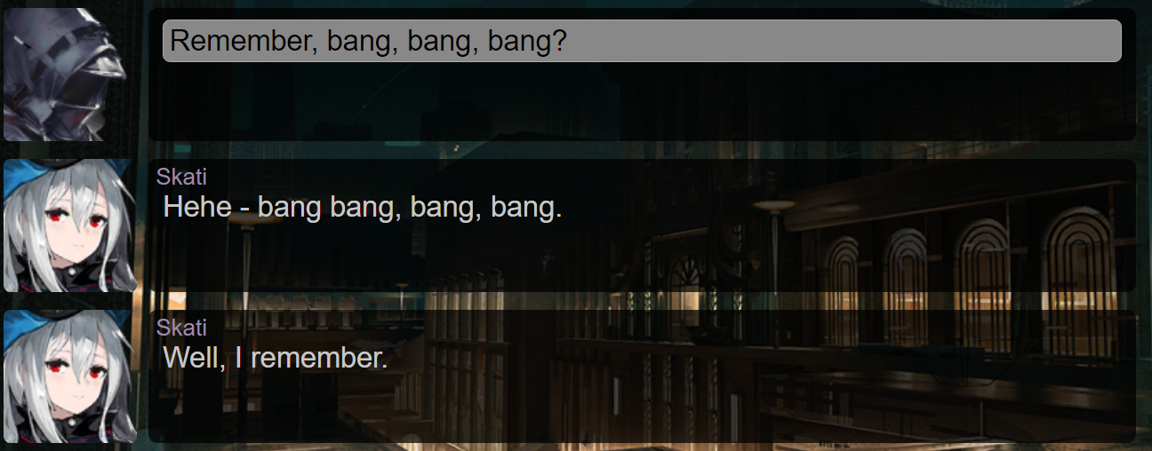 I bet she did, Heidi. I bet she did. Kal'tsit in that handsome suit, a young impressionable Heidi whisked away from her father's gaze...