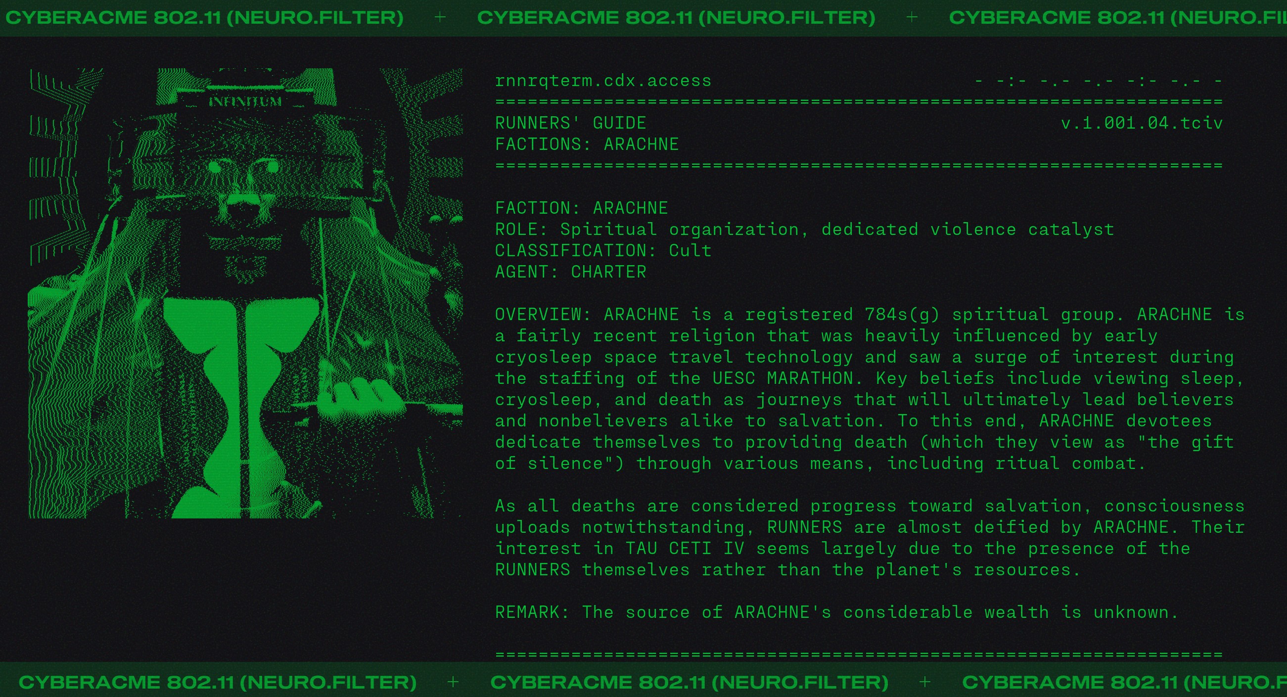 Arachne is my preferred faction for two reasons. The first is that I love retarded edgelord shit. The second is that killing other runners is the biggest dopamine hit I get while playing this game.