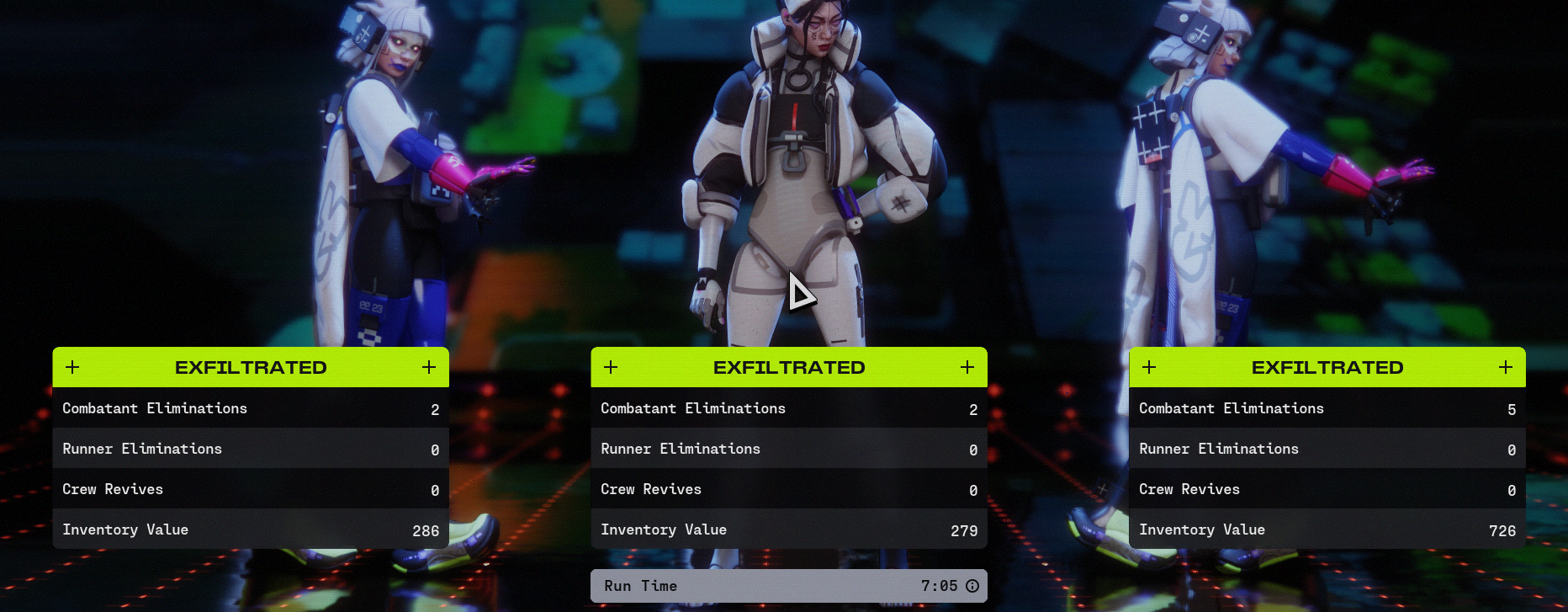 >>559613003Her primary strengths are in her passives, double jump means you can get into/out of situations in different ways than other players, and the slide is a good way to cross a pretty long distance really quickly, but it makes you a high-vis rainbow so it's not at all stealthy. Her blaster doesn't do a ton of damage but it can kill Recruits, and it pops people out of cover or can finish them off if they barely get around a corner and try to heal. Her prime resets heat and gives you a shitload of mobility - the problem is the really long activation time, I've yet to find it particularly useful for pvp since I'm always playing solo, I just use it either for running the fuck away (you'll get way further than anyone chasing you that's not another Vandal) or getting to Final Exfil since again, nobody crosses the map like Vandal does.