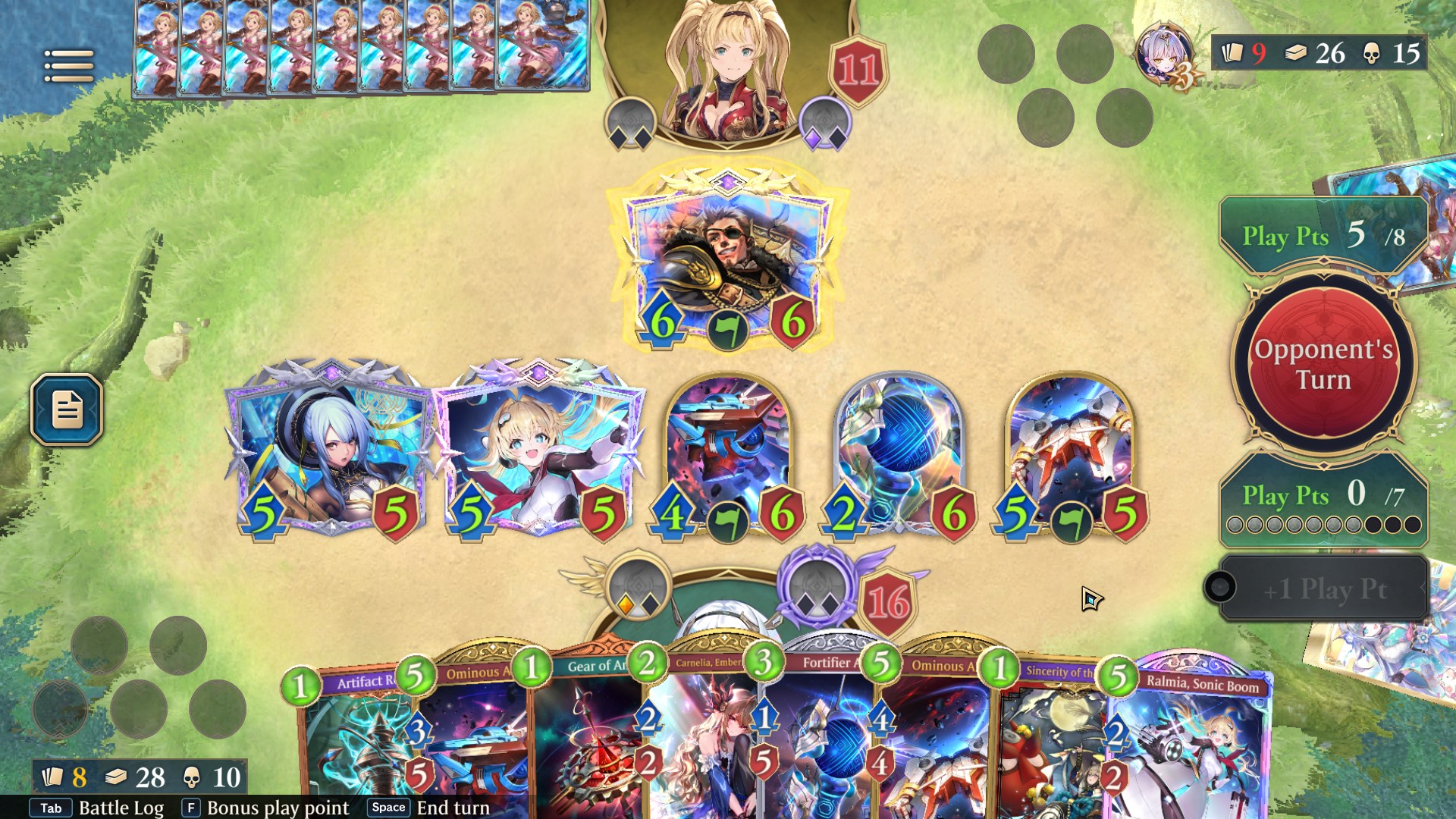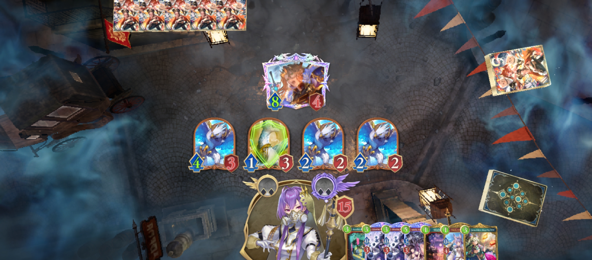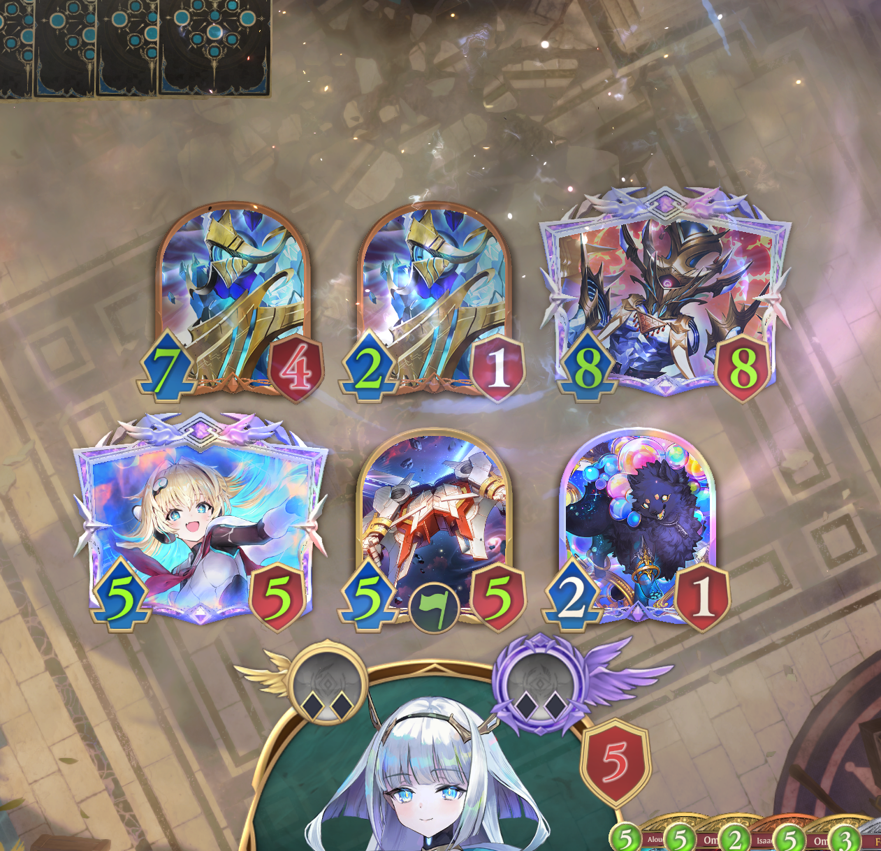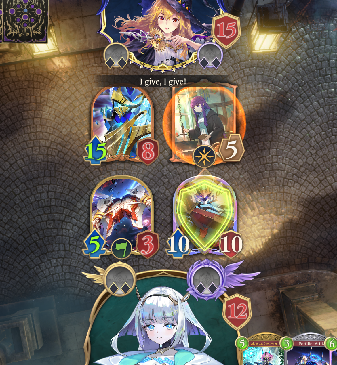 And then my opponent played his *ALBERT PREPARATION CARD* (Noel Sinciro Oguri Cap)Now you are in albert range while you have to clear their board AND you have to heal up out of albert range and yeah, you have to setup a 4 hp ward tooWOWIE!! POW!! EXPLOSIONS!!GOOD LUCK!!