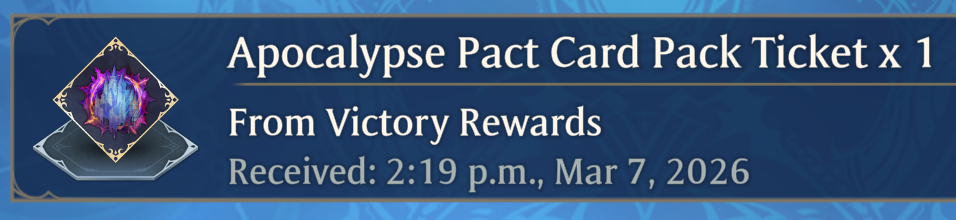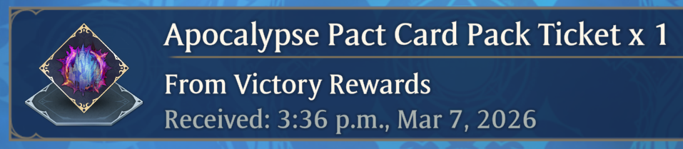 >NewsVictory Rewards Chest Event! (March 1st, 2 am - March 10th 8 pm UTC)https://shadowverse-wb.com/en/news/detail/?id=01KGNXH9X0PJYA6RCH2SD6QJKV>6th Card Set: Apocalypse Pacthttps://shadowverse-wb.com/en/cards/pack/apocalypse-pact/https://www.youtube.com/watch?v=5twIjKWQBeI>Resource Guide (decks, tier lists, guilds, stickers, and leader trailers)https://rentry.org/svg-resourcesOfficial website & deck portalhttps://shadowverse-wb.com/en/https://shadowverse-wb.com/en/deck/Shadowverse Evolve TCGhttps://en.shadowverse-evolve.com//svg/'s card & leader database and deckbuilder (classic)https://svgdb.meShadowverse: World's Beyond Card Databasehttps://mhmkhlrdn.github.io/WBGDB/SiteLast Showdown: >>559527326