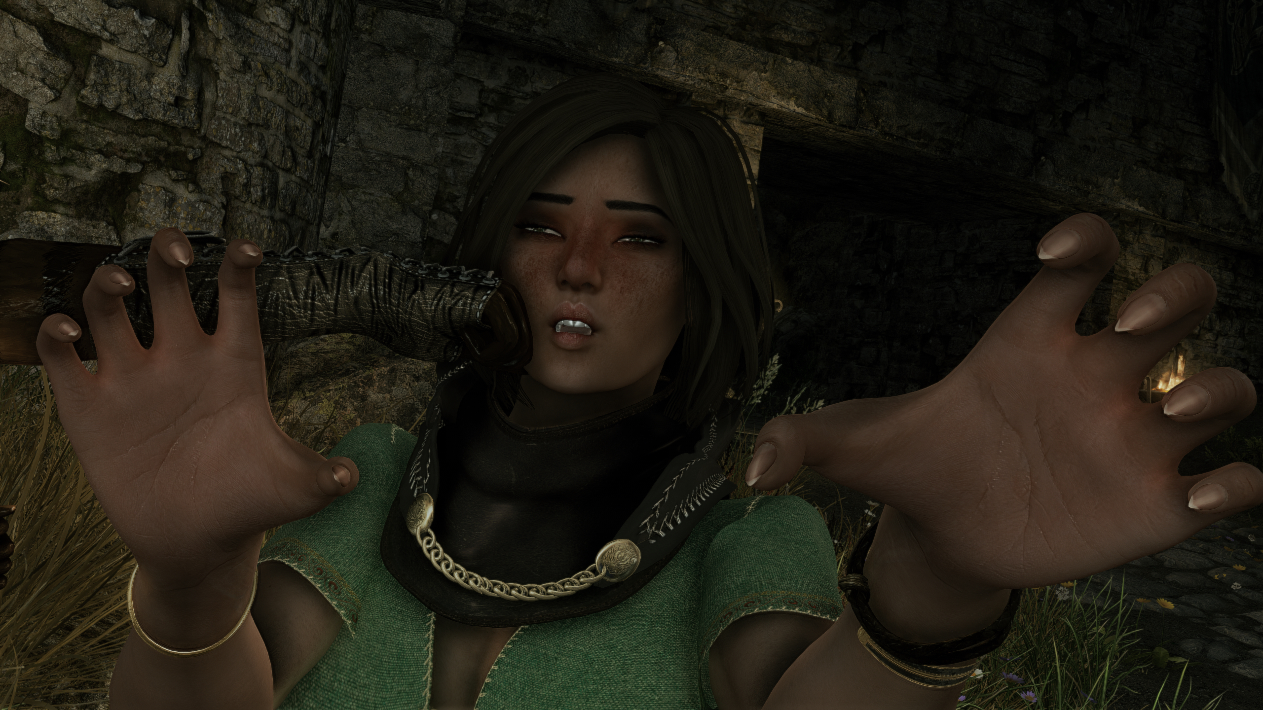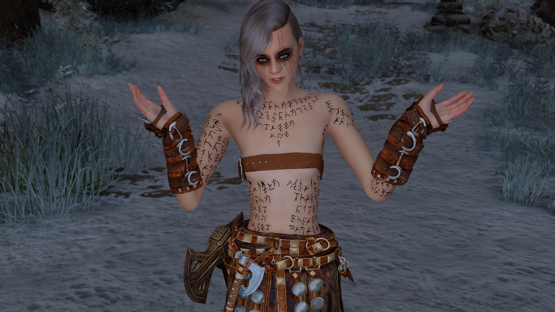 >>559621442Claudia: H-heyKai Wet-Pommel(Commander of the Stormcloaks in Winterhold): Claudia Calidius, Imperial mercenary, come here from Skingrad to profit from the war. We know who you are, and about your criminal past. We also know that you are currently wanted back in county Chorrol for skooma smuggling, assault and indecent exposure.
