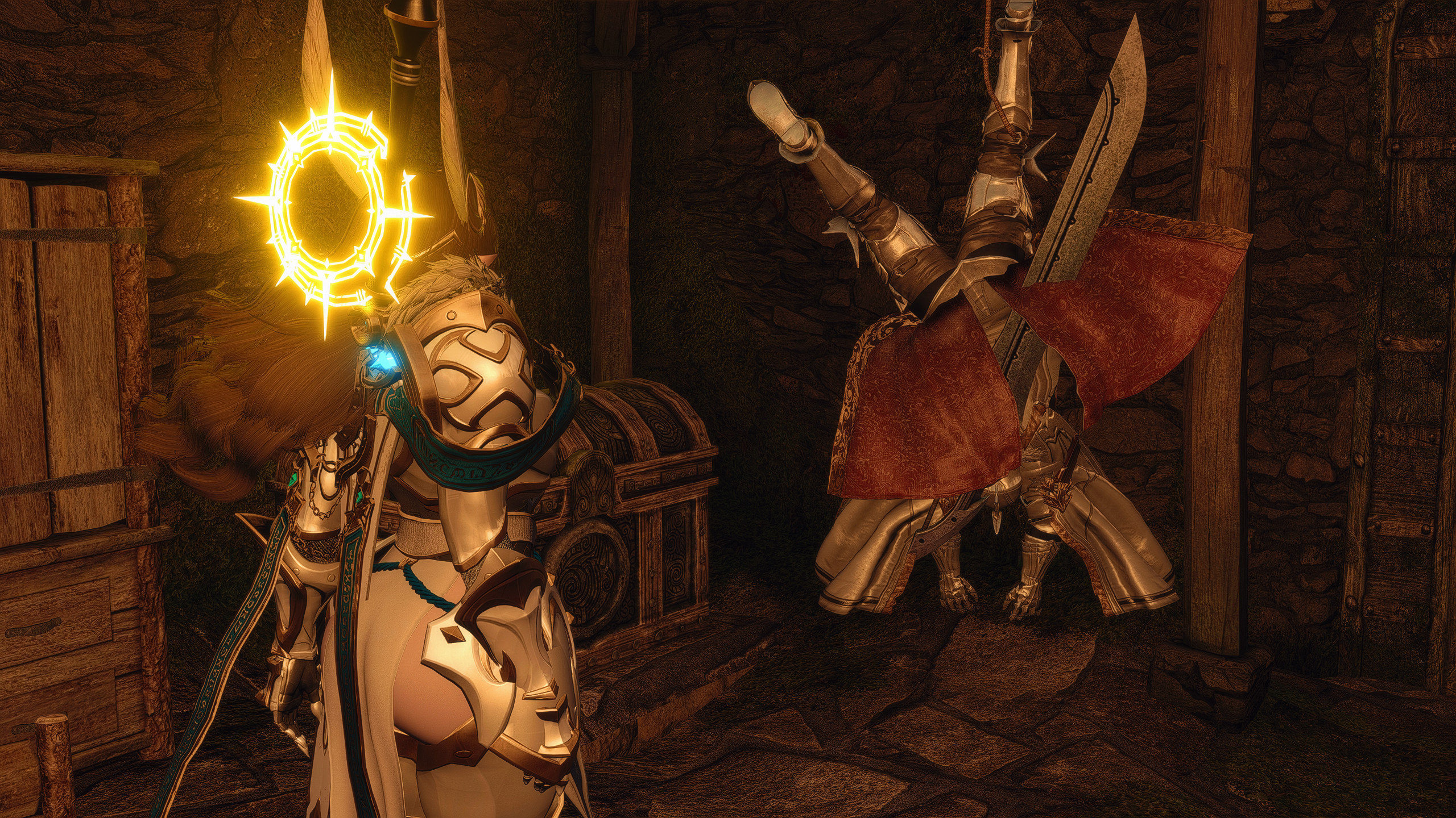 >>559685939the two decided to idle with those poses next to each other after fighting that ghost from the warrens. they look like they're tired or injured like this